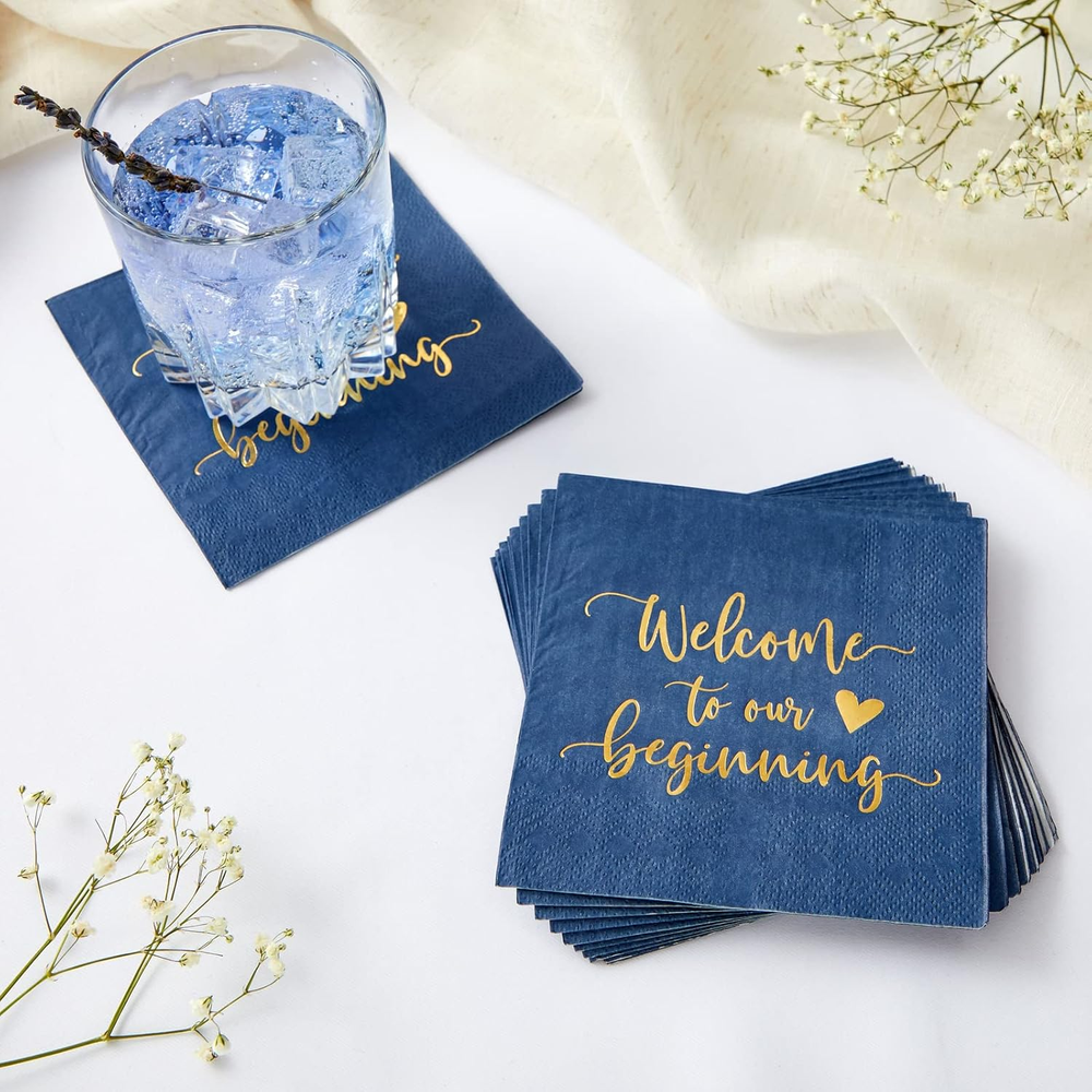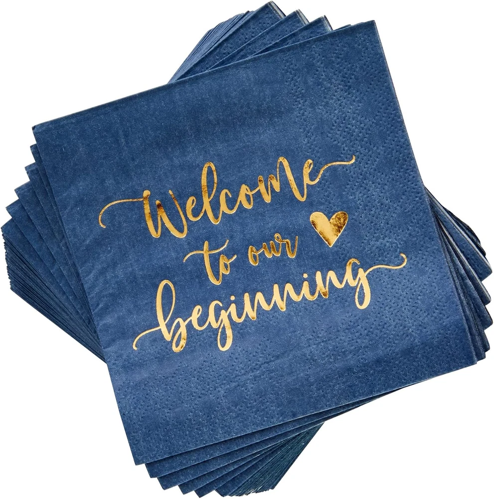 Store New Arrivals Add to Favorite View Feedback Contact Sparkle and Bash 100 Pack Navy Blue Wedding Cocktail Napkins Bulk for Reception, Welcome to Our Beginning, Gold Foil (5 X 5 In) - Wedding Decorations for Reception - Personalized Napkins Description Item model number LJ-GDPLS-061821-07-1 Color Navy Blue Brand Sparkle and Bash Material Paper Material Type Paper Manufacturer Part Number LJ-GDPLS-061821-07-1 Item Weight 12 ounces Ply Rating 3-Ply Manufacturer Juvo Plus Product Dimensions 5 x 5 x 0.04 inches Size 5 x 5 inches Add A Personal Touch: Sparkle and Bash navy blue wedding cocktail napkins bring a personalized touch to your wedding reception with the elegant gold foil message "Welcome to our Beginning." They offer a charming way to make your guests feel welcome and cherished Elegant Surface Protection: Designed with a stylish and heartfelt motif, these personalized cocktail napkins make a sophisticated addition to any wedding reception. Their 3-ply construction ensures durability, keeping surfaces pristine while enhancing your décor Perfect Size For Events: Each cocktail napkin measures 5x5 inches, ideal for serving alongside beverages and enhancing your wedding reception decorations. The thoughtful size and design make them perfect for rehearsal dinner decorations for tables as well Generous Bulk Set: This bulk set of 100 navy blue cocktail napkins ensures you have enough for all your guests at your wedding reception. The ample quantity guarantees you won't run out during your celebration, allowing you to focus on enjoying the moment Versatile Wedding Decor: Suitable for various wedding events, these napkins are a great choice for bridal showers, cocktail parties, and more. Their elegant design and color make them a versatile addition to any navy wedding or personalized cocktail napkins wedding theme Sparkle and Bash presents a delightful addition to your wedding celebration with the "Welcome to our Beginning" navy blue cocktail napkins. Crafted for elegance and functionality, these personalized wedding napkins bring a touch of sophistication to your reception. Each napkin, measuring 5 x 5 inches, is adorned with a charming gold foil script that warmly greets your guests and sets the tone for your special day. Designed with both style and durability in mind, these 3-ply paper napkins are perfect for handling cocktails and light refreshments, ensuring that your surfaces are protected while adding a decorative flair to your wedding reception decorations. The enchanting combination of navy blue and gold seamlessly complements a variety of wedding themes, making them an ideal choice for those seeking to create a cohesive and memorable atmosphere. These personalized cocktail napkins are not only suitable for wedding receptions but are also perfect for rehearsal dinners, bridal showers, and other celebratory gatherings. Their versatile design and premium quality ensure they meet the needs of both men and women, appealing to adults who appreciate stylish and practical party supplies. With this bulk set of 100 napkins, you can effortlessly accommodate your guest list while maintaining an air of elegance. Embrace the opportunity to make your event unforgettable with these navy blue cocktail napkins, tailored to enhance the beauty of your special moments and add a touch of sparkle to every occasion. ABOUT US We offer the best prices around on high quality products. Our E-store includes media such as books, movies, music and games while offering electronics, toys, sporting apparel, clothing, tools, general home, garden items and more. SHIPPING We are always working hard to ensure your package arrives as soon as possible. Please understand that some factors like weather, high postal traffic, and the performance of shipping companies are outside of our control. We offer free shipping to the lower 48 states and ship within 2 business days of payment, usually sooner. We do not accept P.O. Boxes. Please provide a physical address. For shipping outside of the continental USA, we only use eBay's Global Shipping Program.The item is shipped to KY and then sent to the rest of the world. International customers are responsible for all duties and taxes. Continue to check out in order to calculate costs for shipping the item to your country. Messages regarding eBay's Global Shipping Program MUST be directed at eBay EXCLUSIVELY. RETURNS We offer a 30-Day Return Policy on items which you are not completely satisfied with. You have the option for a full-refund or an exchange of the item. No returns are available on items shipped outside of the USA. PAYMENT We accept PayPal. CONTACT US This page content is yet to come Please ad us to your favorite seller and visit again later Thank You CUSTOMER SATISFACTION We try our very best to make sure every customer is completely satisfied. If there's a problem, message us! We're happy to help. WE ACCEPT Copyright © 2021 AutoDS. | All Rights Reserved