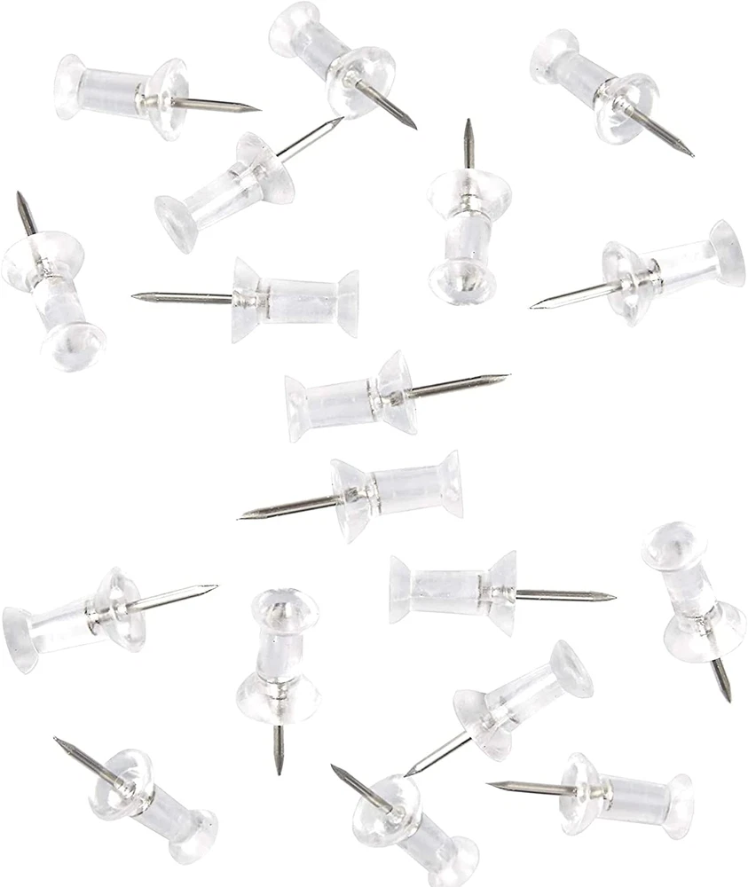 Packing: 100 transparent pushpins used in bulk for bulletin board pushpins Size: 1 inch high and 2 mm thick sharp steel pin for easy pin insertion Reusable pushpins, save your money You can gently push with your fingers, and put the poster on the wall peg very carefully Thumbtacks can be used for manual work in the classroom, office, workplace, home or kitchen 100 transparent pushpins used in bulk for bulletin board pushpins