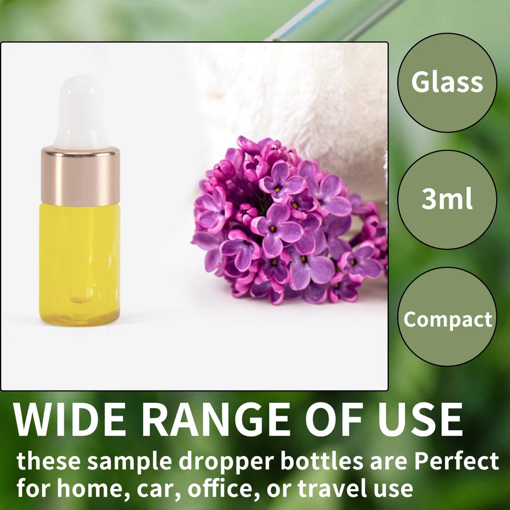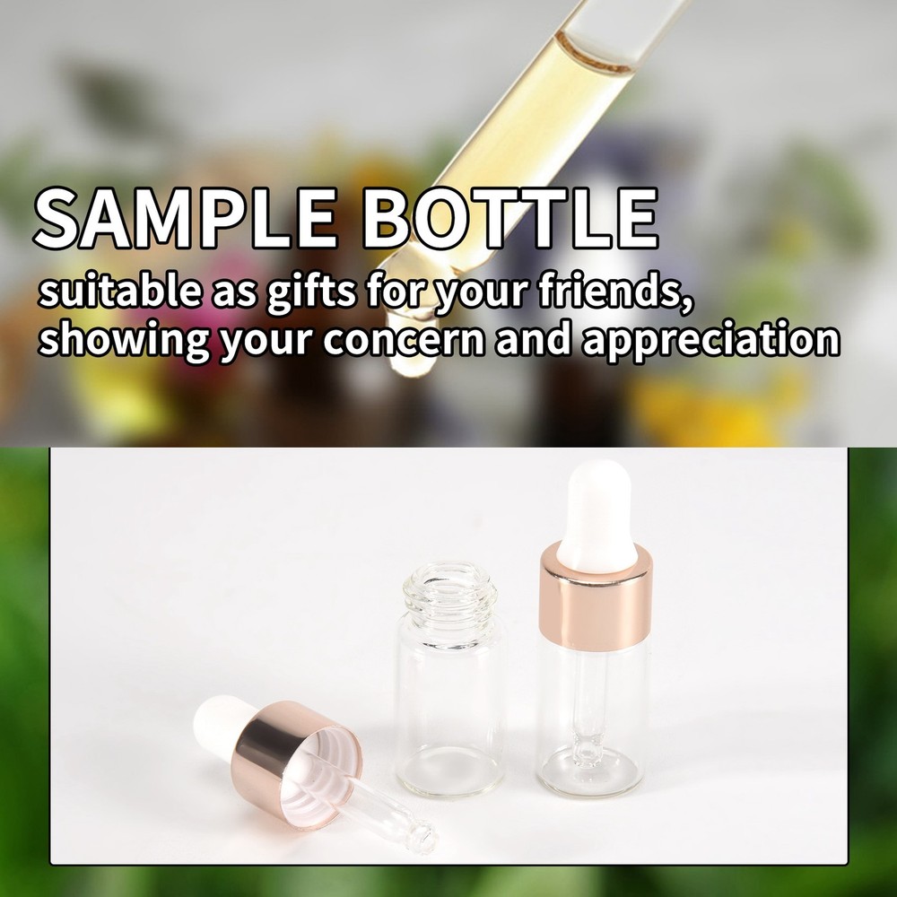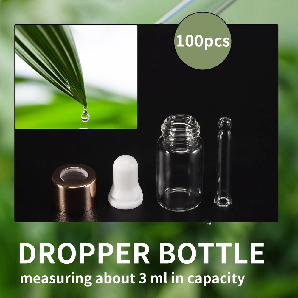 100Pcs Glass Dropper Bottle Clear Essential Oil Dropper Bottles Glass5911 Quantity: the set comes with 100 pieces of mini dropper bottles, measuring about 3 ml in capacity, which is enough for your various needs and Perfect for those who need to store multiple liquids Glass Material: mainly made of glass material, our oil dropper bottle is long lasting and can offer protection for your liquids, safe to use, and the dropper cover can seal the liquid and convenient to access Compact and Convenient: these perfume feature a small size and design, making them easy to carry and store while taking up minimal space; You simply need to put the dropper into the liquid, pinch the rubber head and release it, then the liquid can be inhaled and released Applicable to Most Liquids: with a 3 ml capacity, these dropper bottles are Perfect for storing various liquid products, such as essential oils, perfume oils, cosmetics, samples and other liquids Wide Range of Use: these sample dropper bottles are Perfect for home, car, office, or travel use, easy to carry around, and you can use them to store your handmade liquid products, suitable as gifts for your friends, showing your concern and appreciation Please note: the physical slightly color difference or difference, does not affect the use of the physical shipment for the bulk, you need to diy assemble it again, please do not mind, thank you! Colour:rose gold+transparent Material:Glass Size:3ml Package Contents: 100 x Mini Glass Dropper Bottle