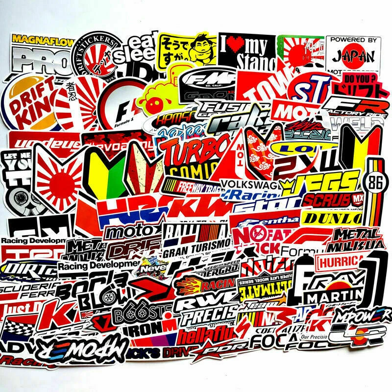 100Pcs JDM Brand Logo Themed Waterproof Stickers Pack Car Motorcycle Racing Moto
