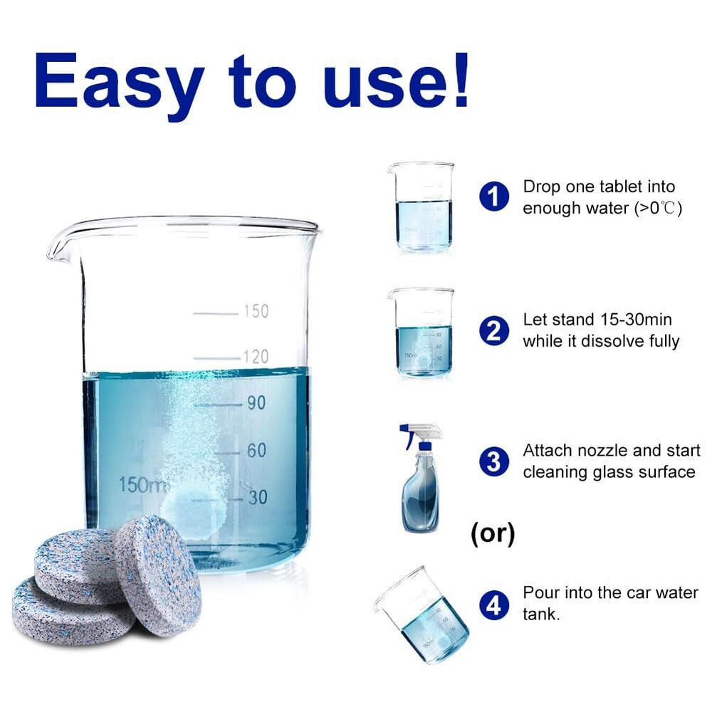Car Windshield Washer Tablets 100 PCS Washer Fluid Tablets Glass Cleaner Wiper Features: Powerful Cleaning Performance: Car Windshield Washer Tablet Are Formulated With Advanced Cleaning Agents That Effortlessly Cut Through Dirt, Grime, A Clean And Clear Window For Safe Driving. The Formula Is Designed To Reduce The Friction Between The Wiper Blade And Glass, Softening The Wiper And Reducing Noise. Cost-Effective & Space-Saving: One tablet can make one gallon of windshield washer fluid or 16 fl oz of cleaner spray, offering a cost-effective and space-saving alternative to bulky pre-mixed fluids. Keep your garage clutter-free and save money in the long run.(1 tablet+ 1 gallon water= 1 gallon windshield washer fluid.) Easy to Use: Simply drop one of Washer Fluid Tablets into your vehicle's washer fluid reservoir and add water. The tablet will dissolve quickly, creating a powerful cleaning solution that's ready to use in minutes. All-Season Performance: windshield washer tablets are designed to provide optimal cleaning performance in all weather conditions, from scorching summer heat to freezing winter temperatures. Never worry about your washer fluid freezing or losing effectiveness again.(Winter: Use With De-icer or Methanol). Safe for All Windshields: Car Windshield Washer Fluid Concentrate Tablets are safe and compatible with all types of windshields and wiper blades, a gentle yet effective cleaning experience without causing any damage. SHIPPING We are always working hard to ensure your package arrives as soon as possible. Please understand that some factors like weather, high postal traffic, and the performance of shipping companies are outside of our control. We offer free shipping to the lower 48 states and ship within 3 business days of payment, usually sooner. We do not accept P.O. Boxes. Please provide a physical address.