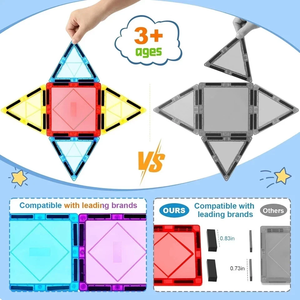 Magnetic Tiles Building Blocks for Kids STEM Learning Ages 3-12