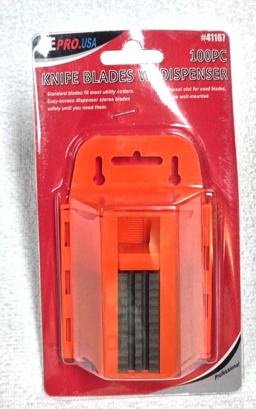 This item is for 100 utility blades. Free domestic shipping only. 100 pc. dispenser with used blade storage. thank you for looking