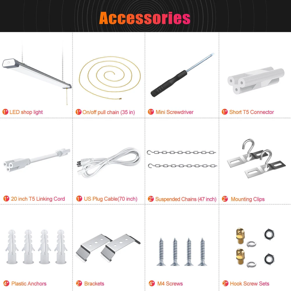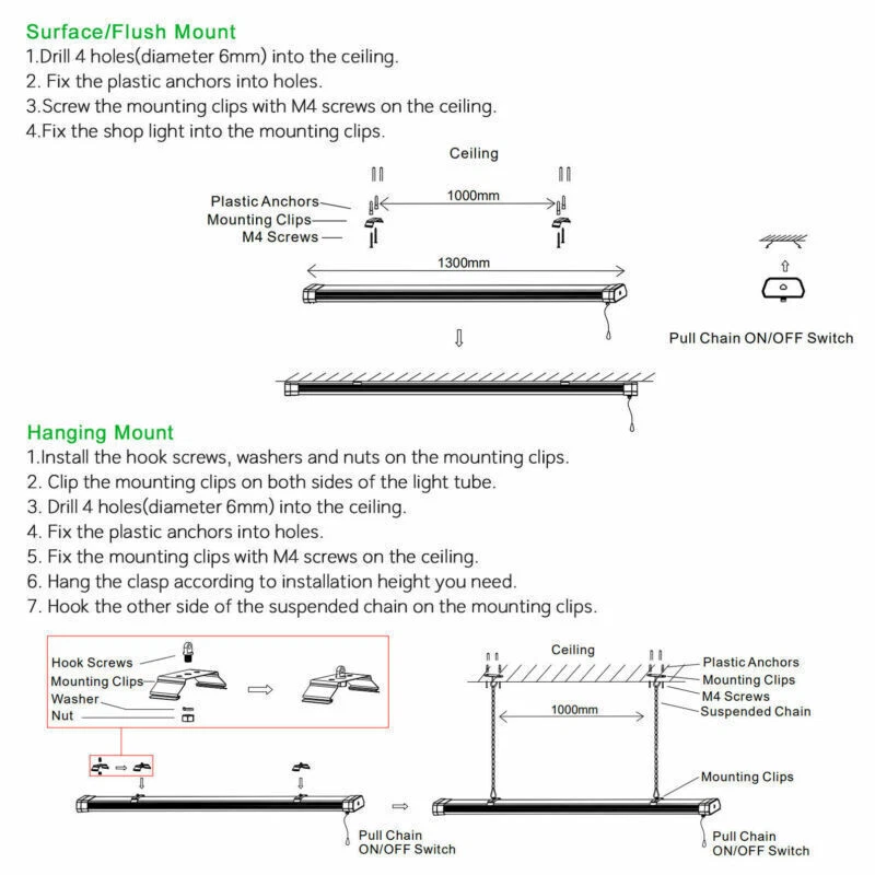 Product Description 100W 120W LED Shop Light Fixture For Garage Workshop Office Warehouse 1-2-4 Pack PACKAGE INCLUDE: Quantity and Wattage as your choice 【Proper lighting for store】 Provides 12,000 Lumens and consumes only 100-Watt of power (120Lm/w), our led shop lights at 5,000K features 120°beam angle,covers more space with CRI>80, non flicker. Making your shop more bright to showcase the products and attract more customers. 【Cut Down Your Electric Bills Up to 80%】Our led garage light is the ideal replacement for up to 5-lamp 32W Fluorescent light, provides you up to 50,000 hours(20 Years or More) service time and less maintenance. 【Ceiling & Chain Mount, Adjustable Pull Chain Switch】With the hassle-free installation, you can opt to surface mount or hang these industrial garage lights. Adjustable pull chain switch provides an instant on, with most convenient. These shop lights are easy to install as either hardwired fixtures or with a power cord. Come with a hardware package. 【Link up to 5 LED Shop Lights】 You can link up to 5 units garage lights together to simplifying your installation. Two connection ways, choose the small connector if you chain mount these led lights, choose 60cm connection wire if you opt to surface mount these commercial lights. Small connectors and 60cm connection wire are provided. 【Excellent Heat Dissipation】Aluminum material provides excellent heat dissipation, this led light offers even lighting with no hot or cold spots. The shatterproof bulbs remain cool when lit. Provides you good experience while working on your garage or workbench 【Free Customer Service & 5 Years Warranty】An extended warranty period of 5 years provides extra peace of mind that these industrial garage lights will hold up over time. The 50,000-hour lifespan means that you won’t need to replace them often. What’s more, any questions, please be free to let us know. We can provide you best support! Specifications Power: 100W Voltage: AC 120V Lumens: 12000lm Power factor:>0.9 Beam Angle: 120° CRI: >80 CCT: 5000K Daylight Lifespan: 50,000 hours Advantage 100W Super Bright Linkable Up to 5 Lights Easy to Install Great Heat Dissipation Low Maintenance Support Hanging Mount or Surface Mount Wide Application The led shop lights is suitable for office,auto shops,workshops,garages, basements, entertainment rooms, storage rooms, warehouses, equipment rooms, industrial workstations, workplaces, showrooms and any other industrial or commercial area. About Us Payment Shipping Returns Contact Us SHENZHEN NUOGUAN TECHNOLOGY CO. LTD founded in 2010. We are high-technology comany specialized in manufacture Commercial and industrial LED light. Advanced production equipment and excellend R&D ability help us to combining service ,production sell together provide top-level products to our customers. 1. Payment is expected within 7 days of auction close. Or Unpaid Items will be forfeited per eBay . 2. Taxes may be applicable at checkout as states adopt new laws and regulations regarding sales tax collection. 1. We ONLY ship to USA . 2. Orders processed within 1-2 business day of payment verification. There’s no Delivery service or courier service on Saturdays, Sundays or Public Holidays. 3. We have 3 different warehouse in US,so due to stock status and time differences, we will choose to ship your item from our first available warehouse for fast delivery. 4. We offer Free Shipping within the Lower 48 states! All packages are sent via UPS or USPS.The delivery time for UPS Ground is typically 2-5 business days. We strive to ensure 100% satisfaction for each and every one of our customers. we offer a 30-day 100% money-back guarantee on all eBay orders. If your item isn't just as you wished, simply send it back to us and we'll refund or replace your item. Please note that all returns must be authorized by our Customer Service department. please contact us though message first if you have any problem. USA Warehouse. Fast shipping! We are appreciated your purchasing form our eBay store. Office Time: 9:30 - 18:30, Monday - Saturday (UTC+8) Please contact us with eBay Message. We will respond you within 24 hours on business day. About Us SHENZHEN NUOGUAN TECHNOLOGY CO. LTD founded in 2010. We are high-technology comany specialized in manufacture Commercial and industrial LED light. Advanced production equipment and excellend R&D ability help us to combining service ,production sell together provide top-level products to our customers. Payment 1. Payment is expected within 7 days of auction close. Or Unpaid Items will be forfeited per eBay . 2. Taxes may be applicable at checkout as states adopt new laws and regulations regarding sales tax collection. Shipping 1. We ONLY ship to USA . 2. Orders processed within 1-2 business day of payment verification. There’s no Delivery service or courier service on Saturdays, Sundays or Public Holidays. 3. We have 3 different warehouse in US,so due to stock status and time differences, we will choose to ship your item from our first available warehouse for fast delivery. 4. We offer Free Shipping within the Lower 48 states! All packages are sent via UPS or USPS.The delivery time for UPS Ground is typically 2-5 business days. Returns We strive to ensure 100% satisfaction for each and every one of our customers. we offer a 30-day 100% money-back guarantee on all eBay orders. If your item isn't just as you wished, simply send it back to us and we'll refund or replace your item. Please note that all returns must be authorized by our Customer Service department. please contact us though message first if you have any problem. Contact Us USA Warehouse. Fast shipping! We are appreciated your purchasing form our eBay store. Office Time: 9:30 - 18:30, Monday - Saturday (UTC+8) Please contact us with eBay Message. We will respond you within 24 hours on business day. You may also like 100W LED Barn Light with Dusk To Dawn Photocell Outdoor Garden Yard Night Ligh