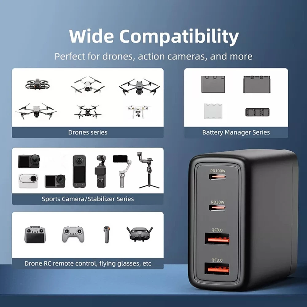 100W 4-Port Fast Charger PD QC3.0 for DJI Drone Phone Camera