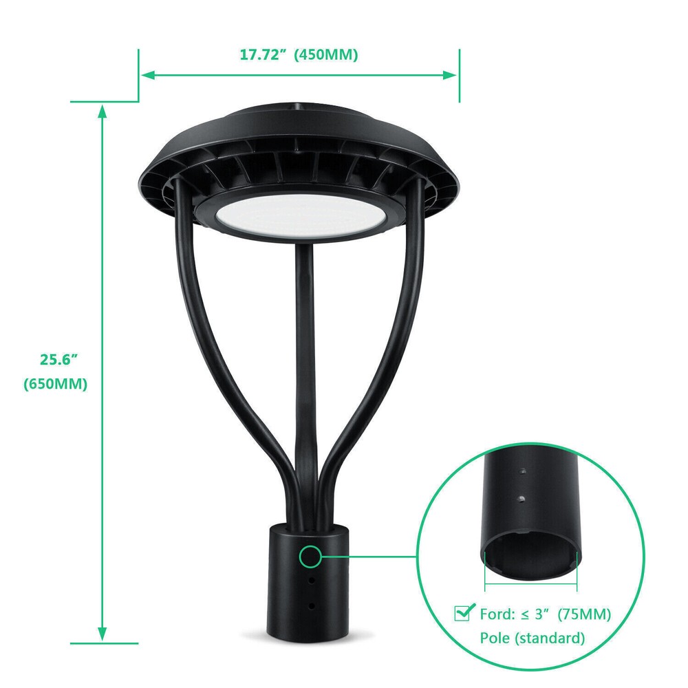 Product Description 100W Post Top Light LED Circular Area Light Garden Street Road IP65 Waterproof Light Up Larger Area - The 100w light post bring 13500Lm with SMD3030 chips, up to 135lm/watt, AC 100-277V universal voltage and 120°beam angle. 5000K color temperature of lighting is a nice choice for street light illumination. Anti-shock, anti-moisture, no glare, no strobe light, no ghosting, protecting your eyes. Excellent Performance - High power factor >0.9, more than 50000hours lifespan, reduce your electricity consumption, save your electronic bill. Provides a continuous, efficient outdoor lighting environment. Commercial Grade Material - The DLC/ETL Listed post pole light fixture made of die-casting aluminum body + protective glass cover. The scientific design helps the exterior light post top to dissipate better, achieve the best use of the led lighting post. IP65 waterproof for drying, wet environment, sandstorms, snowstorms, and harsh weather conditions. Wide Application - The circular post top design give the lamp a uniform brightness and can be applied to a variety of outdoor scences, such as pathway, street, front yard, city expressway, trunk/rustic road, factories, playground, school, garden, courtyard, parking lot, public park, walkway, exterior, driveway, store, farmyard or any other commercial and industrial area. Installation and Warranty - The pole mount of our post area light fits for a 2 3/8-inch OD tenon & less than or equal to 3 inch standard pole, very easy to install and transfor(Please see the video on the product page for more installation info). KUKUPPO offer you lasting safety and reliability backed by a 5-year warranty. For a bulk order, email us in advance to get a different offer. Specifications: Rated Wattage: 100W Luminous Flux: 13500Lm Color Temperature: 5000K Protection Grade: IP65 Material : Aluminum Body+Glass Cover Input Voltage : AC100-277V 50/60Hz Dimension: Dia 460x625 mm Base: 2 Pins Wire Power Factor: >90% Beam Angle : 120 degrees Average Lifetime : More than 50000 hours Flexible Installation The pole mount of our post area light fits for a 2 3/8-inch OD tenon & less than or equal to 3 inch standard pole, very easy to install and transfor Commercial Grade Material DLC/ETL Listed quality. Scientific design helps the exterior light post top to dissipate better, achieve the best use of the led lighting post. Durable Support Rod Made of thick aluminum, stable and strong, waterproof and rustproof. High performance quality provides with lasting safety and reliability. Ultra Bright LED Chips With SMD3030 chips, up to 140lm/watt. Anti-shock, anti-moisture, no glare, no strobe light, no ghosting, protecting your eyes. Kindly Note Please note that the light can not be used IN the water. Please confirm the wire connection is right while installing. About Us Payment Shipping Returns Contact Us SHENZHEN NUOGUAN TECHNOLOGY CO. LTD founded in 2010. We are high-technology comany specialized in manufacture Commercial and industrial LED light. Advanced production equipment and excellend R&D ability help us to combining service ,production sell together provide top-level products to our customers. 1. Payment is expected within 7 days of auction close. Or Unpaid Items will be forfeited per eBay . 2. Taxes may be applicable at checkout as states adopt new laws and regulations regarding sales tax collection. 1. We ONLY ship to USA . 2. Orders processed within 1-2 business day of payment verification. There’s no Delivery service or courier service on Saturdays, Sundays or Public Holidays. 3. We have 3 different warehouse in US,so due to stock status and time differences, we will choose to ship your item from our first available warehouse for fast delivery. 4. We offer Free Shipping within the Lower 48 states! All packages are sent via UPS or USPS.The delivery time for UPS Ground is typically 2-5 business days. We strive to ensure 100% satisfaction for each and every one of our customers. we offer a 30-day 100% money-back guarantee on all eBay orders. If your item isn't just as you wished, simply send it back to us and we'll refund or replace your item. Please note that all returns must be authorized by our Customer Service department. please contact us though message first if you have any problem. USA Warehouse. Fast shipping! We are appreciated your purchasing form our eBay store. Office Time: 9:30 - 18:30, Monday - Saturday (UTC+8) Please contact us with eBay Message. We will respond you within 24 hours on business day. About Us SHENZHEN NUOGUAN TECHNOLOGY CO. LTD founded in 2010. We are high-technology comany specialized in manufacture Commercial and industrial LED light. Advanced production equipment and excellend R&D ability help us to combining service ,production sell together provide top-level products to our customers. Payment 1. Payment is expected within 7 days of auction close. Or Unpaid Items will be forfeited per eBay . 2. Taxes may be applicable at checkout as states adopt new laws and regulations regarding sales tax collection. Shipping 1. We ONLY ship to USA . 2. Orders processed within 1-2 business day of payment verification. There’s no Delivery service or courier service on Saturdays, Sundays or Public Holidays. 3. We have 3 different warehouse in US,so due to stock status and time differences, we will choose to ship your item from our first available warehouse for fast delivery. 4. We offer Free Shipping within the Lower 48 states! All packages are sent via UPS or USPS.The delivery time for UPS Ground is typically 2-5 business days. Returns We strive to ensure 100% satisfaction for each and every one of our customers. we offer a 30-day 100% money-back guarantee on all eBay orders. If your item isn't just as you wished, simply send it back to us and we'll refund or replace your item. Please note that all returns must be authorized by our Customer Service department. please contact us though message first if you have any problem. Contact Us USA 
