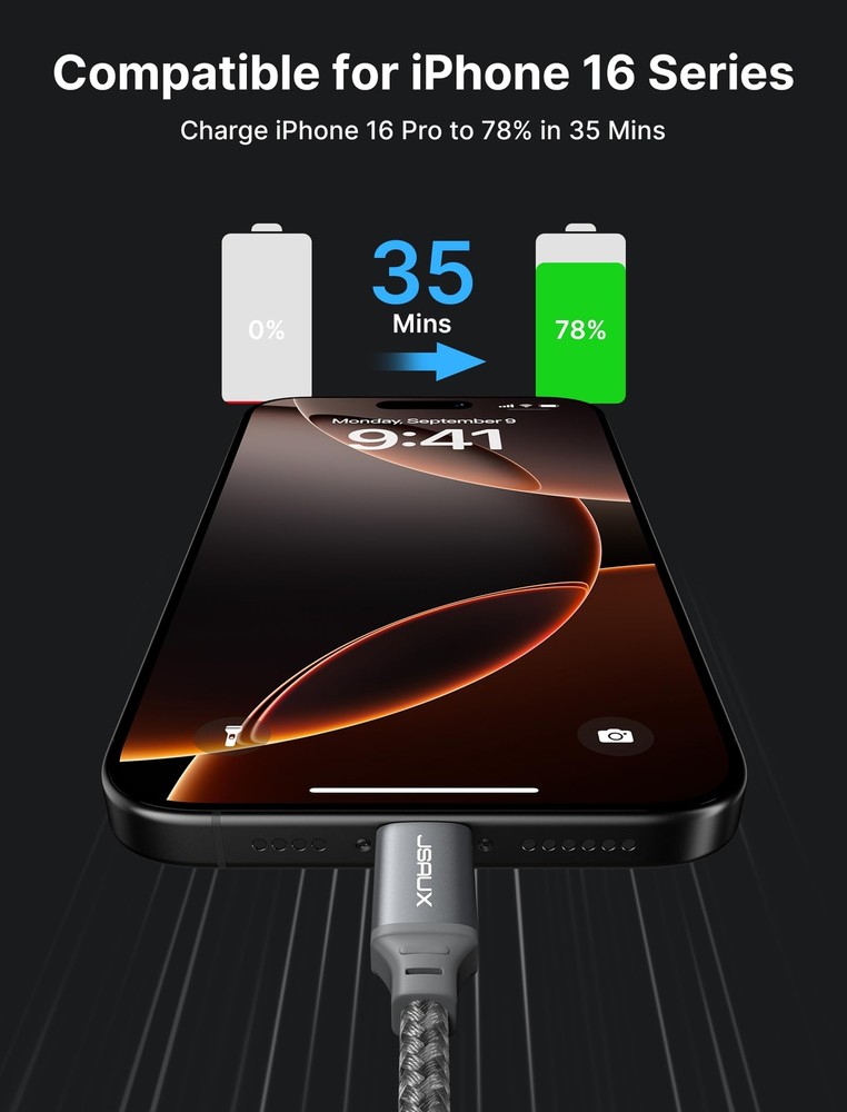 For iPhone 16 Pro Max Plus Charger Cable Heavy Duty USB Charging Lead Data Sync
