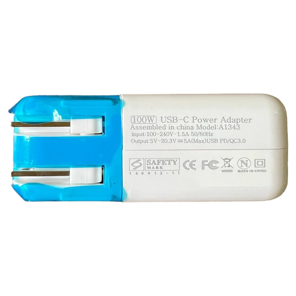 the 100W USB-C Power Adapter A1343 – Your Ultimate Charging Solution for Apple Devices! Key Features: High-Powered Charging: With a robust 100W of power output, this USB-C power adapter is designed to charge your Apple devices rapidly and efficiently. Whether you have a MacBook, iPad, or other compatible devices, this adapter can handle your charging needs with ease. Wide Voltage Compatibility: This adapter supports a wide input voltage range of 100-240V and a frequency of 50/60Hz, making it suitable for use around the world. Whether you're at home or traveling internationally, you can count on this adapter to keep your devices powered up. USB-C Connector: The USB-C connector ensures a secure and reliable connection to your Apple devices. It's designed for convenience, allowing you to plug in your devices effortlessly. Apple-Compatible: This power adapter is specifically designed for Apple devices, ensuring compatibility and optimal performance. It's an ideal replacement or spare charger for your Apple products. Safety First: Built-in safety features protect your devices from overcurrent, overvoltage, and short-circuiting. You can charge your devices with confidence, knowing they are safeguarded. Compact and Portable: The compact design of this power adapter makes it highly portable. Toss it in your bag or keep it on your desk for convenient access to fast charging whenever you need it. Upgrade your charging game with the 100W USB-C Power Adapter A1343. Whether you're at home, in the office, or on the go, this adapter ensures that your Apple devices stay powered up and ready for action. Say goodbye to slow charging and hello to efficiency and convenience with this essential charging accessory
