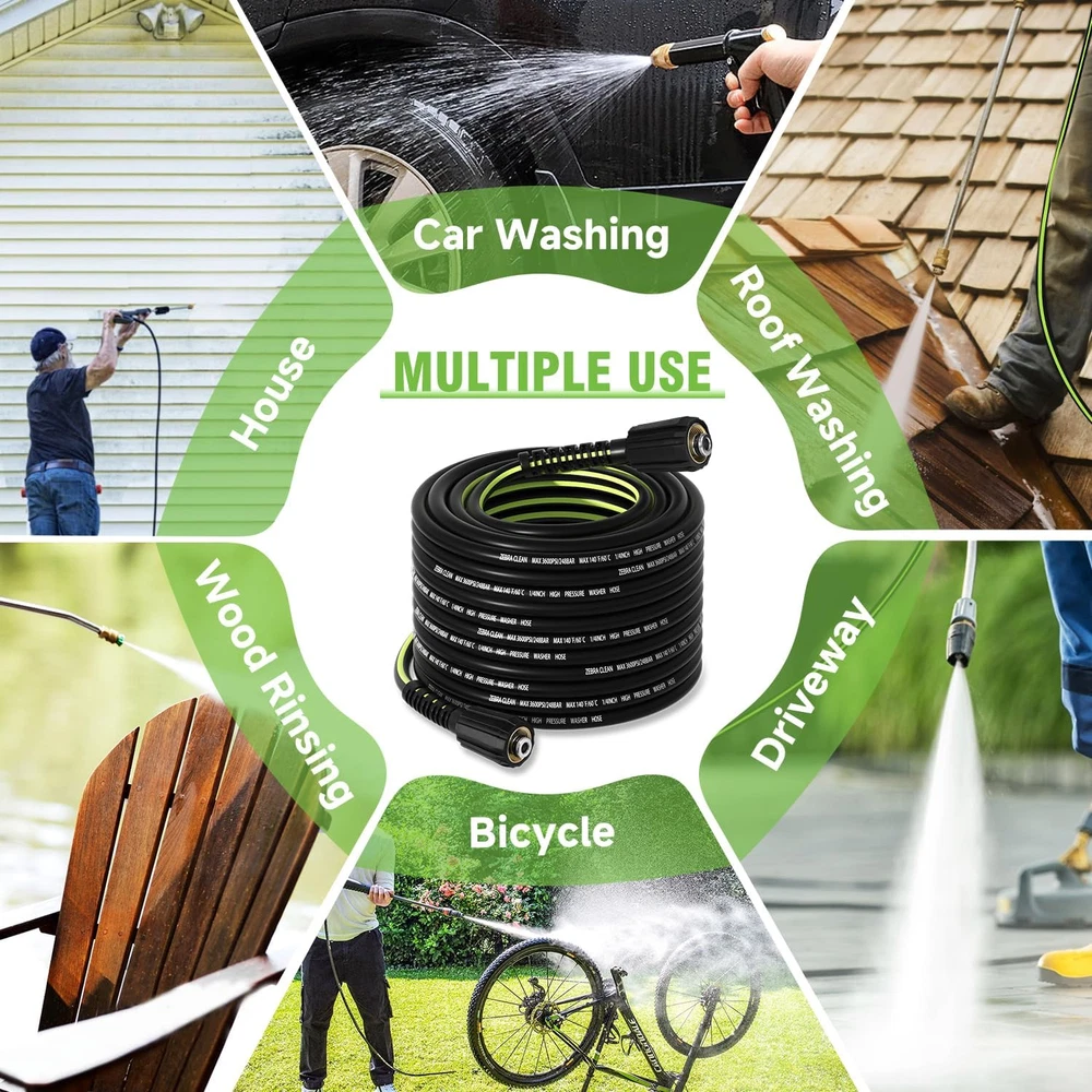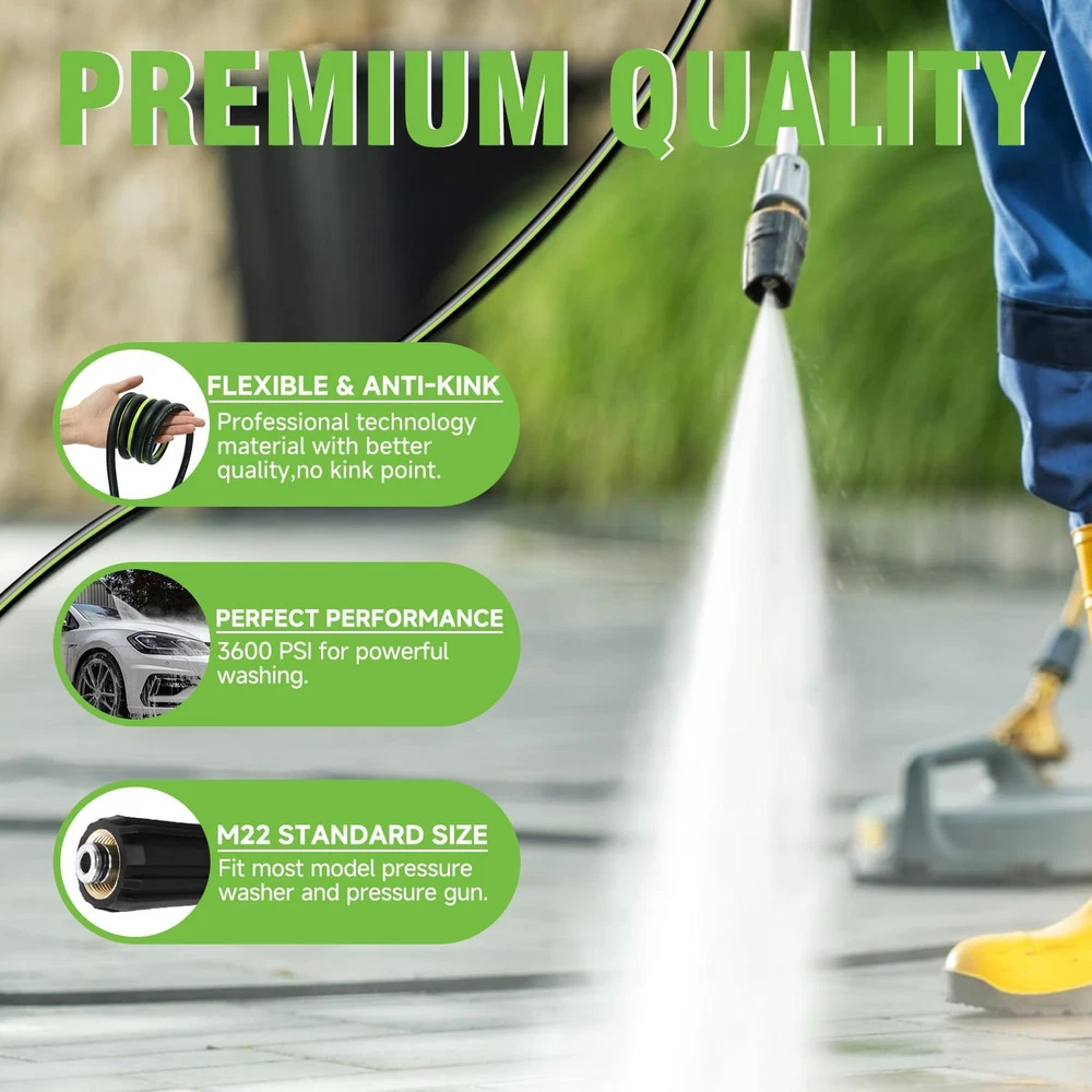 This hose is a total game-changer! The extra length gives me so much freedom to move around without constantly dragging the machine. It's incredibly durable and hasn't kinked once, even when I've wrapped it around obstacles. The quick-connect fittings are super convenient and have stayed completely leak-free. A fantastic upgrade that makes washing the car or deck so much easier.