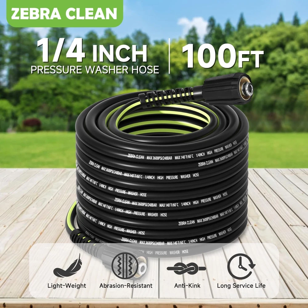 Store New Arrivals Add to Favorite View Feedback Contact Pressure Washer Hose 100 FT X 1/4'',3600 PSI Kink Resistant Power Washer Hose Replacement– Universal Electric Power Washer Hose with Leak-Free M22 Female and 3/8" Quick Connection Kit Description Item model number BKGN Batteries Required? No Maximum Pressure 3600 Pound per Square Inch Color Black Product Dimensions 600"L x 0.5"W Material Polyvinyl Chloride (PVC) Country of Origin China Item Weight 7.7 Pounds Batteries Included? No Item Length 1E+2 Feet Size 100FT Included Components Adapter kit, Pressure Washer Hose 【Universal Replacement Pressure Washer Hose】:ZEBRA CLEAN 1/4“ Pressure Replacement Hose is suitable with most brands’ and models’ pressure washer accessories, for adopting standard M22 fitting craftmanship. And suitable for both light commercial and home use, making it ideal for cleaning a wide range of surfaces including cars, sidewalks, driveways, vehicles, roofs, fences, windows, etc. 【High quality &Kink Resistant】:ZEBRA CLEAN power washer hose is made of advanced durable material,which can withstand up to 3600 psi of pressure.Even if it is pressed by external strong force, it can quickly restore the original shape,and prevents excessive bending when using and keeps water flowing smoothly to ensure efficient cleaning.In addition, Updated outer material ensures pressure washer hose non-marking.Stains can be removed at ease and scratches cannot stay. 【Quick Connect & Extension Hose Kit】:Easy to install/remove and extension with adapter kits, come with 3/8” quick connect and M22 extension coupler, make your setup and storage more convenient. A good choice as a replacement or extension part for your genuine hose.(TIPS:it will NOT fit M22-15mm pressure washers) 【Comprehensive Upgrade】:Upgrade inner tube to achieve kink resistance,and get smooth Water Flow when using. Thicker wear jacket,anti-wear and extend service life. Reinforced Braided Layer to prevent bubble formed. 360°swivel handle, slip proof easy and fast load. 【Customer Service】:For your better use,if you have any issue,please feel free to contact us,ZEBRA CLEAN customer service team will help you at any time. Product Description Features of Power Washer Hose Heavy Duty Connector Heavy-duty Solid Brass and 100% pure ABS mat, which makes power washer replacement hose more durable and non leak than aluminum connector. Super Flexible Power washing hose is made of innovativePVC material, which make it be super flexible to have excellent operational performance. Kink Resistant Upgraded Kink-Resistant pressure washer extension hose, smooth water flow without block or kink during using. Easy to Coil Pressure washer hose's excellent flexibility make it easier to maneuver and coil up ,it comes with a handle strap for storage, saving you time and effort. ABOUT US We offer the best prices around on high quality products. Our E-store includes media such as books, movies, music and games while offering electronics, toys, sporting apparel, clothing, tools, general home, garden items and more. SHIPPING We are always working hard to ensure your package arrives as soon as possible. Please understand that some factors like weather, high postal traffic, and the performance of shipping companies are outside of our control. We offer free shipping to the lower 48 states and ship within 2 business days of payment, usually sooner. We do not accept P.O. Boxes. Please provide a physical address. For shipping outside of the continental USA, we only use eBay's Global Shipping Program.The item is shipped to KY and then sent to the rest of the world. International customers are responsible for all duties and taxes. Continue to check out in order to calculate costs for shipping the item to your country. Messages regarding eBay's Global Shipping Program MUST be directed at eBay EXCLUSIVELY. RETURNS We offer a 30-Day Return Policy on items which you are not completely satisfied with. You have the option for a full-refund or an exchange of the item. No returns are available on items shipped outside of the USA. PAYMENT We accept PayPal. CONTACT US This page content is yet to come Please ad us to your favorite seller and visit again later Thank You CUSTOMER SATISFACTION We try our very best to make sure every customer is completely satisfied. If there's a problem, message us! We're happy to help. WE ACCEPT Copyright © 2021 AutoDS. | All Rights Reserved
