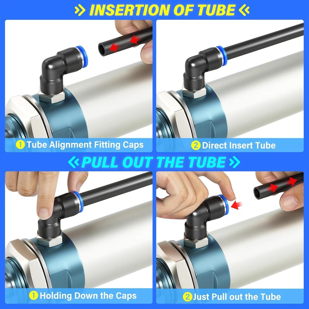 10 Pack PU3/8"OD Black Push to Connect Quick Air Hose Fittings - PTFE Tube