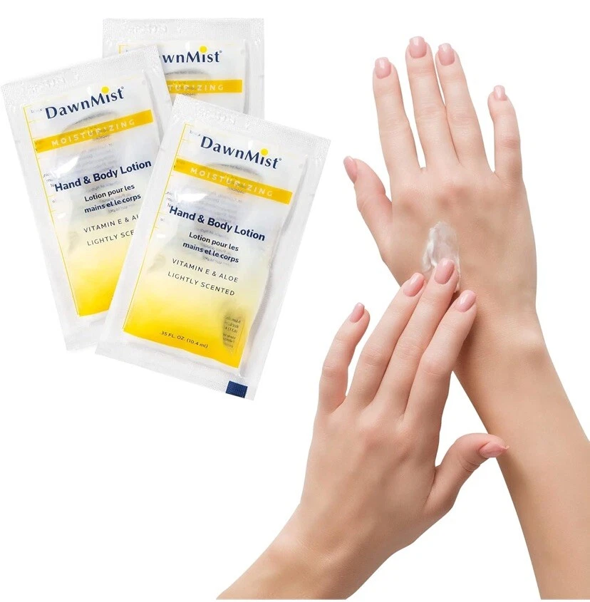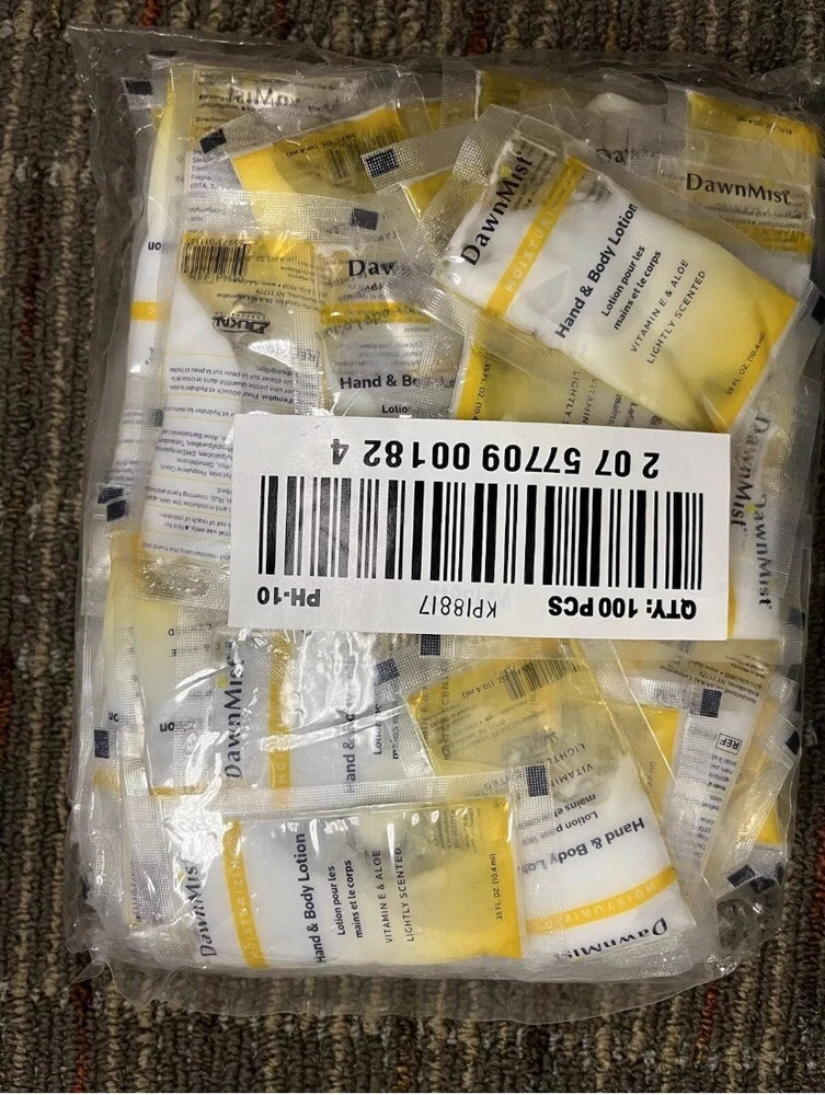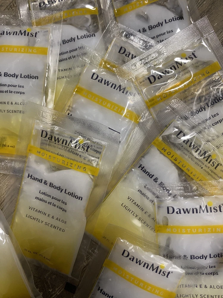 DAWN MIST 100-pack Hand & Body Lotion Single-use Packets Vitamin E & Aloe. .35 oz ea.