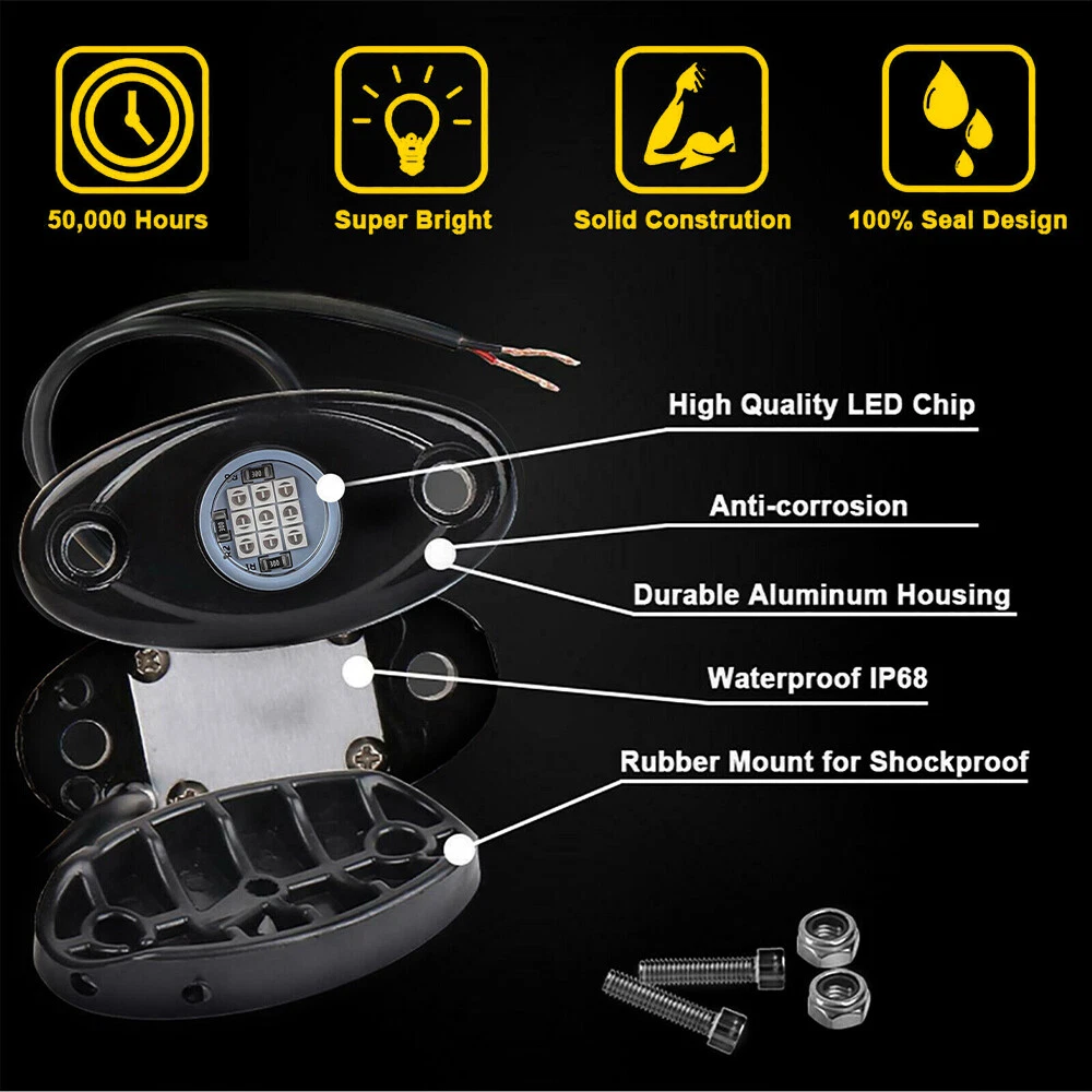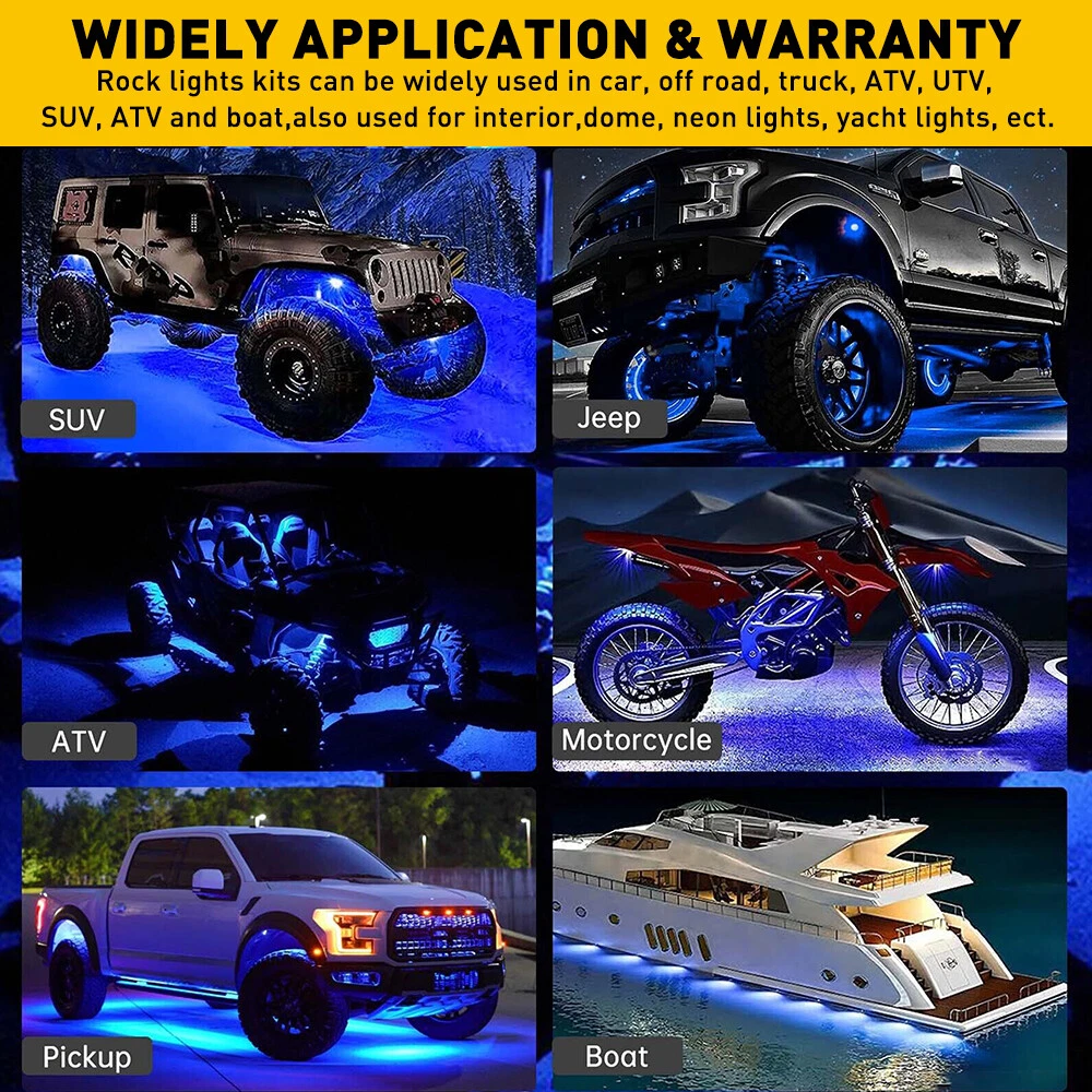 Specification: Suitable models: Universal, including cars, SUVs, JEEP, truck, etc Connection mode: red wire to the positive pole, black wire to the negative pole Placement on vehicle:Under,Fender,Wheel eyebrow, grill,wheel arch etc. LED Quantity: 9 LED Per Light Voltage: DC 10V-14V Material: Diecast Aluminum Housing Color: Blue Service life: 50000+ hours Waterproof:IP68 Housing color:Black Features: *Brilliant brightless: High intensity chip lights up the entire under car. *Wateproof design: High waterproof rating (IP68)with long service life. 100pc Blue LED Rock Lights For Jeep Off-Road Truck UTV ATV Underbody Wheel Light Specification: Suitable models: Universal, including cars, SUVs, JEEP, truck, etc Connection mode: red wire to the positive pole, black wire to the negative pole Placement on vehicle:Under,Fender,Wheel eyebrow, grill,wheel arch etc. LED Quantity: 9 LED Per Light Voltage: DC 10V-14V Material: Diecast Aluminum Housing Color: Blue Service life: 50000+ hours Waterproof:IP68 Housing color:Black Features: *Brilliant brightless: High intensity chip lights up the entire under car. *Wateproof design: High waterproof rating (IP68)with long service life. *Universal Application: This LED rock lights widely fits for JEEP, Rock crawlers, rock bouncers, off-road, truck, UTV, ATV, SUV, RV, boat, golf cart, tow vehicles, Camp trailer trailers, trikes, street rods, drifters, low riders, racers, etc *DIY Style: Mini design makes the rock lights easy to mount anywhere you want. Perfect for car lights, off-road lights, truck bed lights, van lights, camp trailer lights, tow vehicles lights, boat lights, etc. Packaging included: 100 PCS LED Rock Lights 1 SET Installation Kit Item Specifics Brand OXILAM Lighting Technology LED Suitable For Underbody Light LED Quantity 9 LED Per Light Light Color Blue Type Rock Light Features CANbus Compatible Manufacturer Part Number XPD-DPD-49491 Voltage DC 10V-14V Material Diecast Aluminum Housing Wattage 9 W Suitable models Universal, including cars, SUVs, JEEP, truck, etc Universal Fitment Yes Waterproof IP68 Country/Region of Manufacture China Manufacturer Warranty 2 Years Bulb Life Hours Up to 50,000 Hours Connection mode red wire to the positive pole, black wire to the nega Model Light Placement on vehicle Under,Fender,Wheel eyebrow, grill,wheel arch etc. Housing color Black Application for JEEP, Rock crawlers, rock bouncers, off-road, truck, Application 2 for trikes, street rods, drifters, low riders, racers, Fitment Type Performance/Custom FAQ ♥ If you have a decoding problem or any other problems, please contact us first, we will help you with it. We will reply you within 24 hours in working days. I'm a new seller, thanks a lot for your trust and convince! I will serve you with all my heart. ♥ Q1: Will this bulb fit my vehicle? A: We can match almost any vehicle to one of our bulb sizes. eBay only lets us include some vehicle fitments per listing, but if your vehicle does not show up on the compatibility table at the top of our listings, welcome you to contact us for free consulation before purchasing a product. Q2: My item has not arrived, what's taking so long? A: Sometimes items take longer than expected, especially if it’s going far or to rural area. Check with your post office to see if your item has been held up. Sometimes Royal Mail will not update a tracking number until it has arrived at its destination. If your item still don't arrive after a few days, let us know so we can double check for you and help solve it asap. Q3: My bulbs won't fit, help! A: Special bulb holder may be required. See if you can take the holder from the stock bulb. If not, let us know. The bulb size may be wrong, double check the item you received with the item you ordered. Do you have an aftermarket lighting housing? These may not be perfectly fitted for aftermarket bulbs and will require some manual modifications. Q4: Neither side lighting up? Both sides flicker, hyper flash, or work inconsistantly. A:Check the light fuses, and then check the ballast plugs to insure correct installation. If this doesn't work, there may be a voltage problem with the vehicle. You probably just need a relay or capacitor. Even though some bulbs are builtin resistors, they may still need a decoder. Pay & Ship (1). We gladly accepts payment via PayPal, We will ship your item(s) within 24 hours. (2). Before payment, please keep the consistency of Paypal address and ebay address. (3). Quantity orders are welcome! Returns (1). We offer 60 days free return policy. Please contact us within 60 days from the date you receive your order if you have any issues with the product or want return. Refund will be send after we got your resend package. (2). All returned items should be in the original packaging , return tracking information should be provided . Contact Us (1).Negative feedback will not help resolve any problems you have, please contact us via eBay messages before leaving negative feedback , our customer service will make best effort to help you with the issues. (2).We maintain high standards of excellenceand strive for 100% customer satisfaction! Feedback is very important to us. We request that you contact us immediately before you give us neutral or negative feedback, so that we can satisfactorily address your concerns. About us We're professional in car and motorcycle accessories, especially in LED bulbs. We have our own factory and R&D team. Our belief is to sell top quality items that fit your car and serve you with our heart. Anything please feel free to contact us! Our customer service is very responsibility. Come and follow us! DESCRIPTION NEW ARRIVED HOT SALE CONTACT US SAVE US Store Category Store Home Other Hot Item 54LED Emergency Light Bar Rooftop Double Side Strobe Warning Light Amber + White USD 66.49 Chrome LED License Housing Plate For Lights Chevy Silverado 1500 3500 2500 99-13 USD 15.99 2x 48 LED 12V Car Interior Roof Light Ceiling Dome Lamp RV Camper Trailer Tr