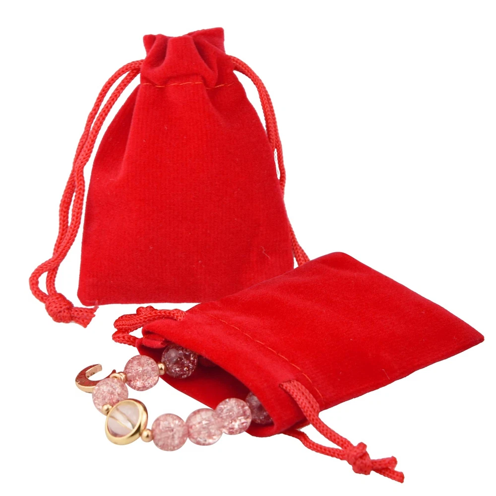 100pcs 2 X 2.8 inch Velvet Cloth Jewelry Pouches Velvet Drawstring Bags Chris...