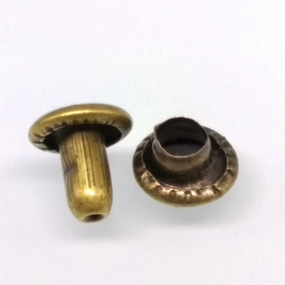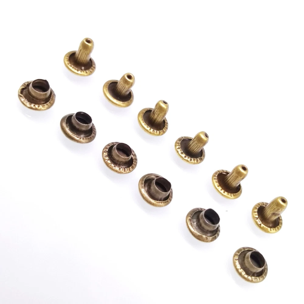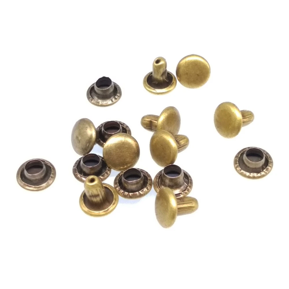 100pcs Round Double Cap Rivets Leather Craft Stud Repair Tool DIY Sets Material: Iron Color: Bronze Type: Double cap rivet Shape: Round Size(Dia x H): 6 x 6mm(0.23 x0.23inch) Cap Diameter: 6mm / 0.23" Package Included: 100 x Rivets 100 x Caps eBay Cross Border Trade powered by ChannelEffect