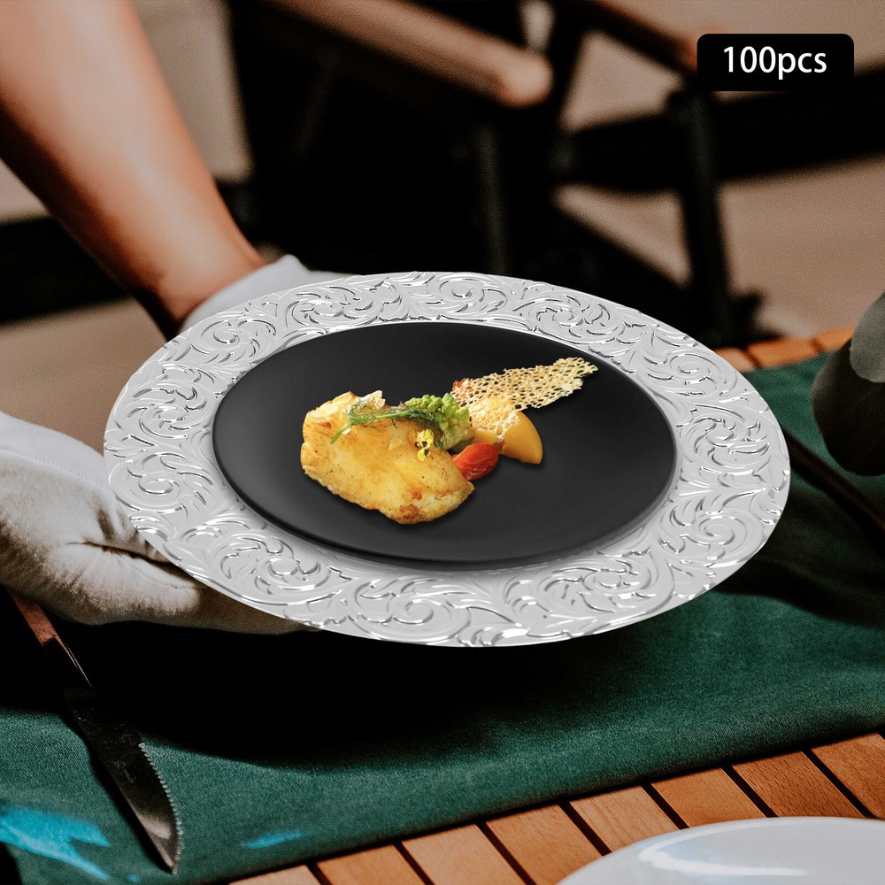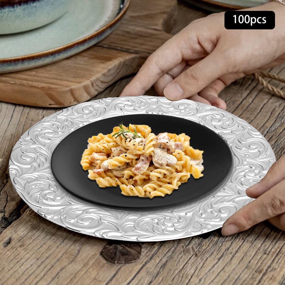 100x Silver 13" Round With Embossed Rim Charger Plates Wedding Dinner Light USA Welcom to yanqiuwangluo66 Description This set of charger plates can add elegant decorations to your banquet table for weddings, family gatherings, and holiday celebrations. The high-quality PP and the beautiful texture on the surface make each plate sturdy and durable and give it a beautiful and glossy appearance to be a great addition to your table. Key Features Long Service Life: Made of PP with the spraying paint process, the product is healthy to use and is resistant to verdana, wear, and fade, so you can use it for long periods with confidence. 100 Pieces a Set: This large quantity set of plates is not only suitable for home use, but also for large events, hotels, restaurants, and other commercial venues. Charming Appearance: The simple round shape, gold color, and beautifully embossed rim make these products premium decorations for your table, especially when matching with other dinnerware sets. Store with Ease: These plates can be stacked when not in use for convenient storage in your cabinet with less space occupation. Lightweight : This 100-piece set is approximately 35.27 lbs(each is only about 0.35 lbs), allowing you to easily pick it up and move it to where you want to place it. Easy to Maintain: The smooth surface and simple structure allow you to easily clean it with warm water and a soft cloth. The product can be reused after cleaning. Ideal Gift: This beautiful and high-quality set is an ideal housewarming or holiday gift for your friends, families, and colleagues. Customer Service: We aim to provide quality products and services. If you have any problems, please feel free to contact us. We will reply and solve the problem for you as soon as possible. Details Smooth Edges: They provide you with a smooth touch feeling while protecting your hands from getting scratched during daily use. Sunken Bottom: It provides a proper place for placing salad bowls, soup bowls, and entree plates to prevent accidental spills and protect your table. Application The product is suitable for birthday parties, holidays, weddings, banquets, baby showers, restaurants, hotels, daily life, traveling, camping, picnics, barbecues, or other events. Specifications Color: Silver Style: Modern Shape: Round Material: PP Process: Spraying Paint Assembly Required: No Number of Pieces: 100 Product Size(D*H): 33*2cm/12.99*0.79in Packaging Size: 40*33*33cm/15.75*12.99*12.99in Gross Weight: 17.5kg/38.58lbs Net Weight: 16kg/35.27lbs Package Included 100* Charger Plates Notes Please check the style and size carefully before ordering. It is not recommended that the product comes into direct contact with food. Please do not clean them with a dish-washing machine, steel wool, electric-heating disinfection tableware cabinet, or put them into the microwave. Please use a soft cloth to clean and dry. Please allow the slight color difference caused by the shooting light and 1-3cm error due to manual measurement, and make sure you do not mind before you order. Payment Delivery details Terms of sales About us Contact us Payment We accept ebay payment 。 Fees such as import duties, taxes are not included in the item price or shipping costs. These charges are the buyer's responsibility. Delivery details Shipping: 2-9 working days to: USA Terms of sales We maintain high standards of excellence and strive for hundred percent customer satisfaction. Feedback is very important to us. We hope that you contact us immediately before you give neutral or negative feedback, so that we can address your concerns. It is impossible to address issues if we do not know about them! About us Your satis faction is our ultimate goal. We work hard to earn your trust and future business. Our certified technicians have tested each item before shipping. The unit comes with 1 year limited warranty on all manufacturing defects. a) If you receive a defective item, you may return it or ask for a discount. Please contact us within 14 days after you receive the package. b) What you returned must be intact and in its original packaging as re? u. Customer is responsible for shipping costs of the returned item. c) We will cover the cost of shipping back t with the shipping rate indicated in the registration page. We will send you a new unit or refund the full payment you paid. Thank you. Contact us Business Hour Business Hour: Monday To Friday: 8:30 AM to 5:00 PM (Beijing China time) Due to time zones, our reply to your questions may not be immediately. But within above working time, we will reply your email within 24 hours. If it's non-workdays, please kindly be patient and wait till Monday. Please contact us with ebay message. Please feel free to contact us if you have any questions. Monday To Friday: 8:30 AM to 5:00 PM (Beijing China time) Due to time zones, our reply to your questions may not be immediately. But within above working time, we will reply your email within 24 hours. If it's non-workdays, please kindly be patient and wait till Monday. Please contact us with ebay message. Please feel free to contact us if you have any questions. On Mar 1, 2026 at 19:23:09 PST, seller added the following information: