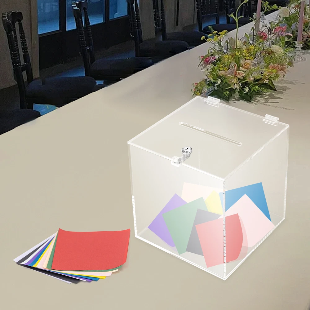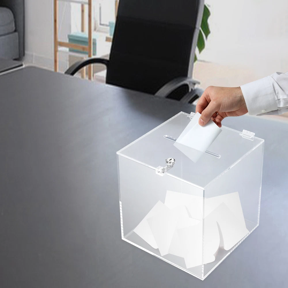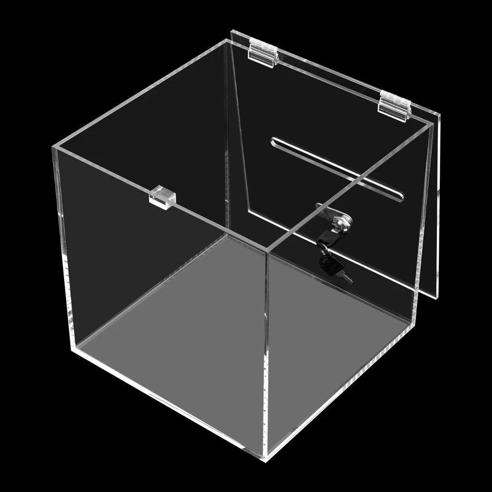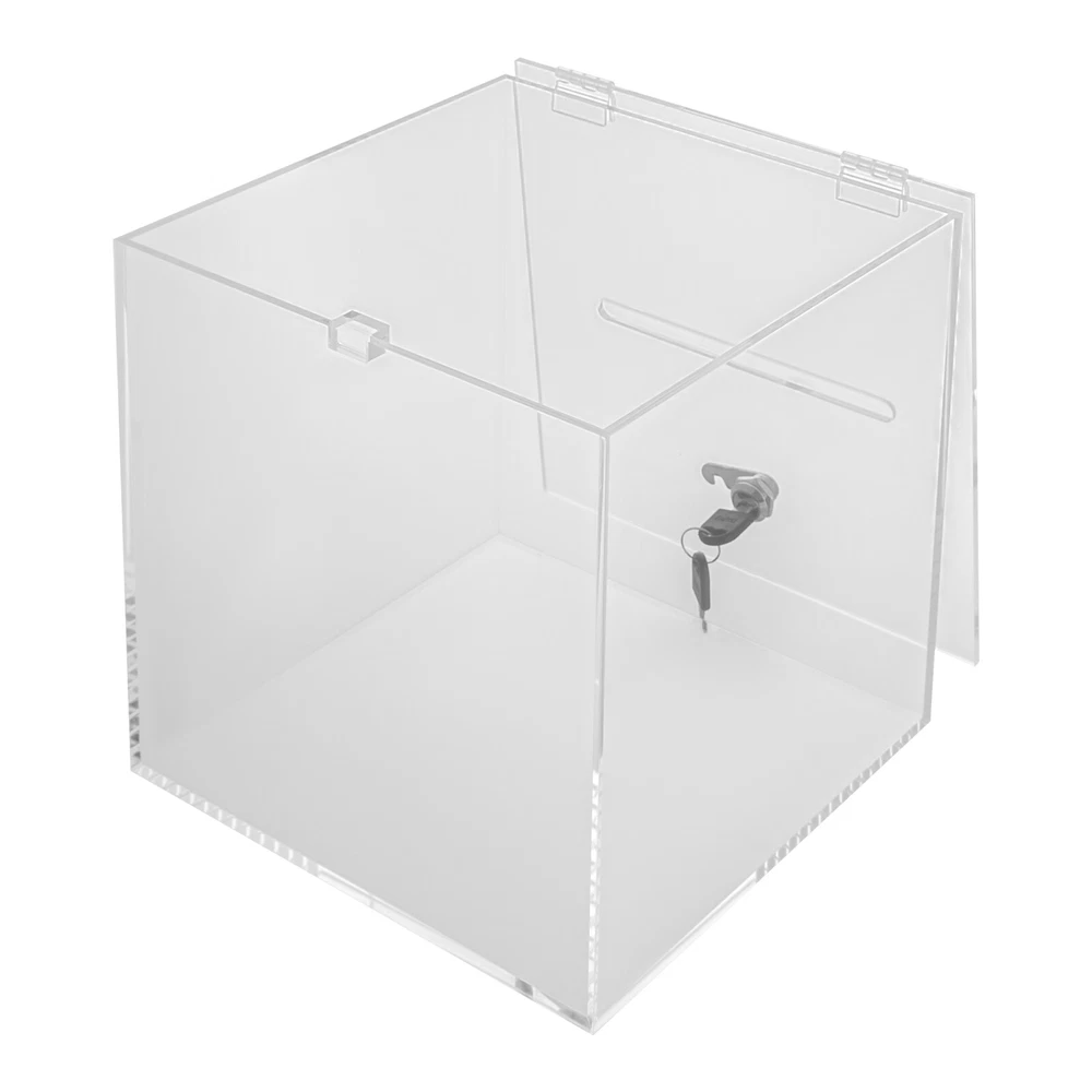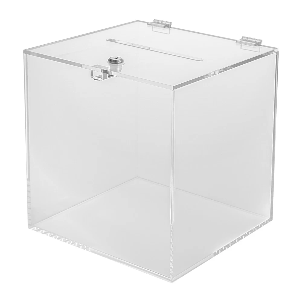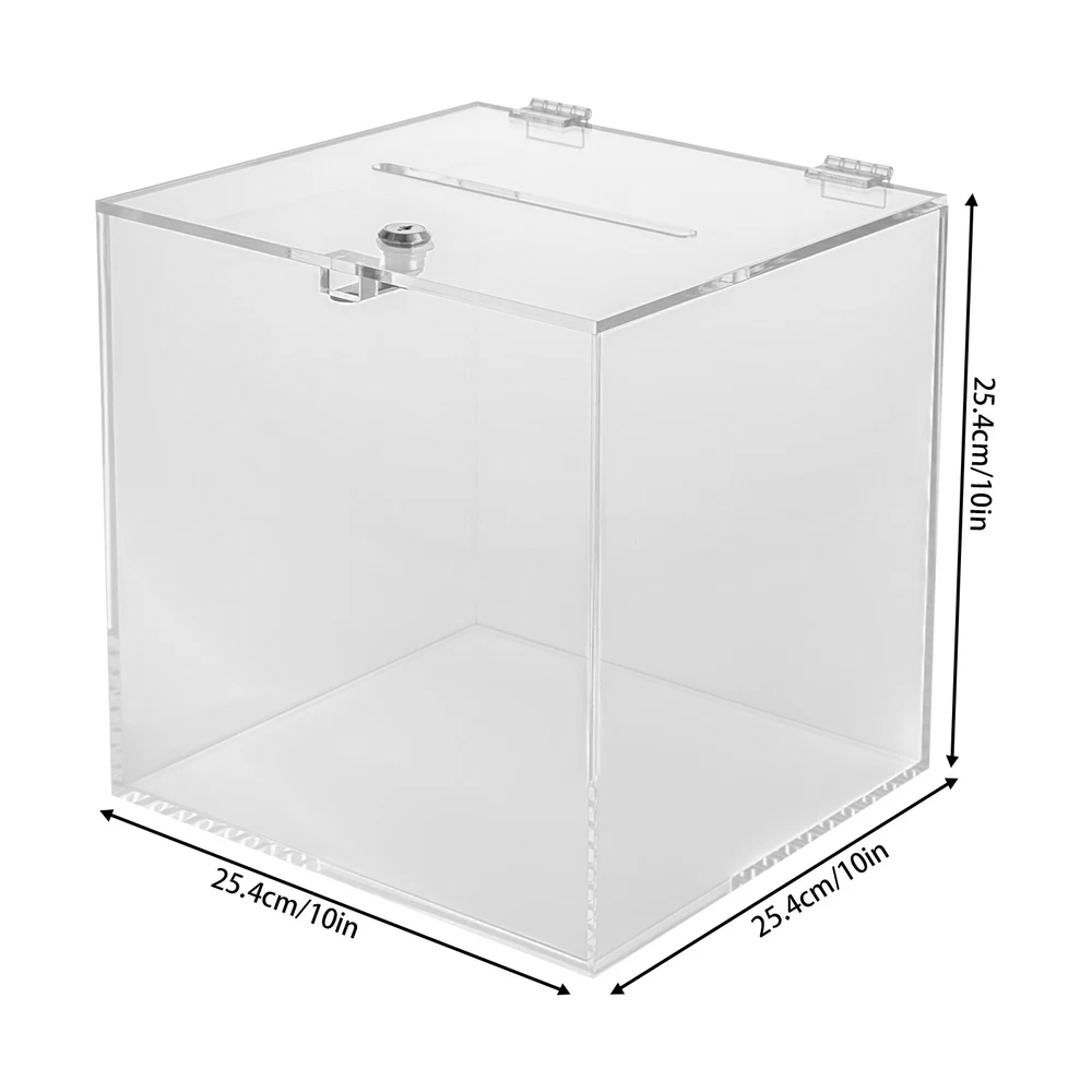 Specifications Color: Clear Material: Acrylic Process: Laser Cutting Shape: Square Style: Modern Assembly Required: No Mounting Type: Free Standing, Tabletop Load Capacity: 2kg/4.41 lbs Number of Keys: 2 Thickness: 3mm/0.12in Product Inner Size: 25.1*25.1*25.1cm/9.88*9.88*9.88in Top Slot Size: 0.8*12cm/0.31*4.72in Product Size: 25.4*25.4*25.4cm/10*10*10in Package Size: 30*30*30cm/11.81*11.81*11.81in Gross Weight: 3kg/6.61lbs Net Weight: 2.5kg/5.51lbs Package Included 1* Acrylic Donation Box 2* Keys 10*10in Acrylic Donation Box, Money Storage Container, Suggestion Box with Lock Welcome~ Description This donation box combines function and fashion. Not only does it have a stylish design, but also it has a great deal of versatility and can be used for events such as voting, fundraising, elections, and so on. This acrylic donation box is sturdy and durable and comes with a lock and two keys to ensure security. Come and buy it. Key Features Sturdy and Durable: It is made of acrylic and adopts a laser cutting process, which has high toughness and wear resistance . It is not easy to break and deform, so you can use it for a long time. Clear Design: The clear box allows everyone to observe the changes inside, ensuring that the event is conducted fairly and openly. Safe to Use: This product is equipped with a security lock, which not only protects privacy but also ensures the safety of the items in it. Easy to Clean: The simple construction and smooth surface makes it easy to clean and you just need to wipe it with a damp cloth (not included). Ready to Use: You can use this product directly after receiving it without additional installation, which saves you time and energy. Large Capacity: With a strong load-bearing capacity (4.41 lbs) and a large interior size ( 9.88*9.88*9.88 inches ) , you can feel free to put letters, cards, money, and so on into it. Compact & Portable: Its lightweight (5.51 lbs) and compact size (10*10*10in) allow it to be placed on the tabletop without taking up too much space and can be carried and stored with less effort. Thoughtful Design: The top slot with a suitable size (0.31*4.72in) is convenient for you to put in letters or cards. Protective Packaging: To prevent the product from being damaged during transportation, we packed it with bubble bags to protect your products to the maximum extent possible. Details Fully Openable Lid: The top lid can be opened fully to take out the items from the box easily. 2 Keys: The two keys make it easy for you to use one of them as a spare in case you lose it. Application This product can be used for fundraising, voting, collecting suggestions, feedback, complaint letters, and so on, as well as for storing money, postcards, cards, and so on. It can be widely used at home, office, school, shopping mall, weddings, and other occasions or places. Specifications Color: Clear Material: Acrylic Process: Laser Cutting Shape: Square Style: Modern Assembly Required: No Mounting Type: Free Standing, Tabletop Load Capacity: 2kg/4.41 lbs Number of Keys: 2 Thickness: 3mm/0.12in Product Inner Size: 25.1*25.1*25.1cm/9.88*9.88*9.88in Top Slot Size: 0.8*12cm/0.31*4.72in Product Size: 25.4*25.4*25.4cm/10*10*10in Package Size: 30*30*30cm/11.81*11.81*11.81in Gross Weight: 3kg/6.61lbs Net Weight: 2.5kg/5.51lbs Package Included 1* Acrylic Donation Box 2* Keys Notes Please confirm the dimensions before purchasing. Please note this product does not include any cards, letters, or money. Please allow the slight color difference caused by the shooting light and 1-3 cm error due to manual measurement, and make sure you do not mind before ordering. tu1 Payment Delivery details Terms of sales About us Contact us Payment We accept ebay payment 。 Fees such as import duties, taxes are not included in the item price or shipping costs. These charges are the buyer's responsibility. Delivery details Shipping: 2-9 working days to: USA Terms of sales We maintain high standards of excellence and strive for hundred percent customer satisfaction. Feedback is very important to us. We hope that you contact us immediately before you give neutral or negative feedback, so that we can address your concerns. It is impossible to address issues if we do not know about them! About us Your satis faction is our ultimate goal. We work hard to earn your trust and future business. Our certified technicians have tested each item before shipping. The unit comes with 1 year limited warranty on all manufacturing defects. a) If you receive a defective item, you may return it or ask for a discount. Please contact us within 14 days after you receive the package. b) What you returned must be intact and in its original packaging as re? u. Customer is responsible for shipping costs of the returned item. c) We will cover the cost of shipping back t with the shipping rate indicated in the registration page. We will send you a new unit or refund the full payment you paid. Thank you. Contact us Business Hour Business Hour: Monday To Friday: 8:30 AM to 5:00 PM (Beijing China time) Due to time zones, our reply to your questions may not be immediately. But within above working time, we will reply your email within 24 hours. If it's non-workdays, please kindly be patient and wait till Monday. Please contact us with ebay message. Please feel free to contact us if you have any questions. Monday To Friday: 8:30 AM to 5:00 PM (Beijing China time) Due to time zones, our reply to your questions may not be immediately. But within above working time, we will reply your email within 24 hours. If it's non-workdays, please kindly be patient and wait till Monday. Please contact us with ebay message. Please feel free to contact us if you have any questions.