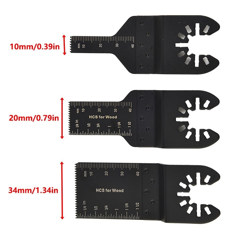 Saw Blades Oscillating Power Tools Set Wood 10/20/34mm 3pcs Accessories DESCRIPTION Details: *3pcs Oscillating Multi Tool Saw Blades Set. *Precision saw teeth for smooth cutting, not easy to break. *Mainly used for cutting soft metal, wood, plastic or opening hole. *Fits for most brands of oscillating for power tools. *Material:High carbon steel *Color: Black *Size:10mm, 20mm, 34mm *Quantity: 3pcs Package Contents: 3 x Saw Blades Notes: The real color of the item may be slightly different from the pictures shown on website caused by many factors such as brightness of your monitor and light brightness. POLICES Shipping Payment WARRANTY We only ship to confirmed ebay Order addresses. Please comfirm that your Order address is in line with your shipping address. Please kindly note that the c ombined shipping is not provided because the shipping fee is calculated by weight. Also, the each additional item means exactly the the same color and size. It takes about 7 -15 working days to US; about 10-30 working days to other countries. Transit time may be a little delayed because of the bad weather and customs inspection . If you do not receive your item within 30 working days since payment finished, please contact us immediately for further assistance. Payment must be completed within 5 days. If you have any problems about payment, please contact us via ebay message. We strive for 100% customer satisfaction! Positive Feedback is very important to us. If you have any questions, p lease feel free to contact us via "Ask seller a question" . We will reply your email within 24 working hours. On Jan 2, 2025 at 09:37:40 PST, seller added the following information: