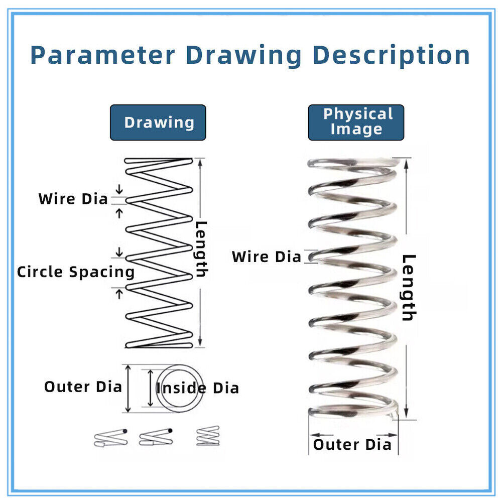 $ 1.45304 Stainless Steel Wire Dia Compression Springs 5mm-16mm 0.9mm Thickness