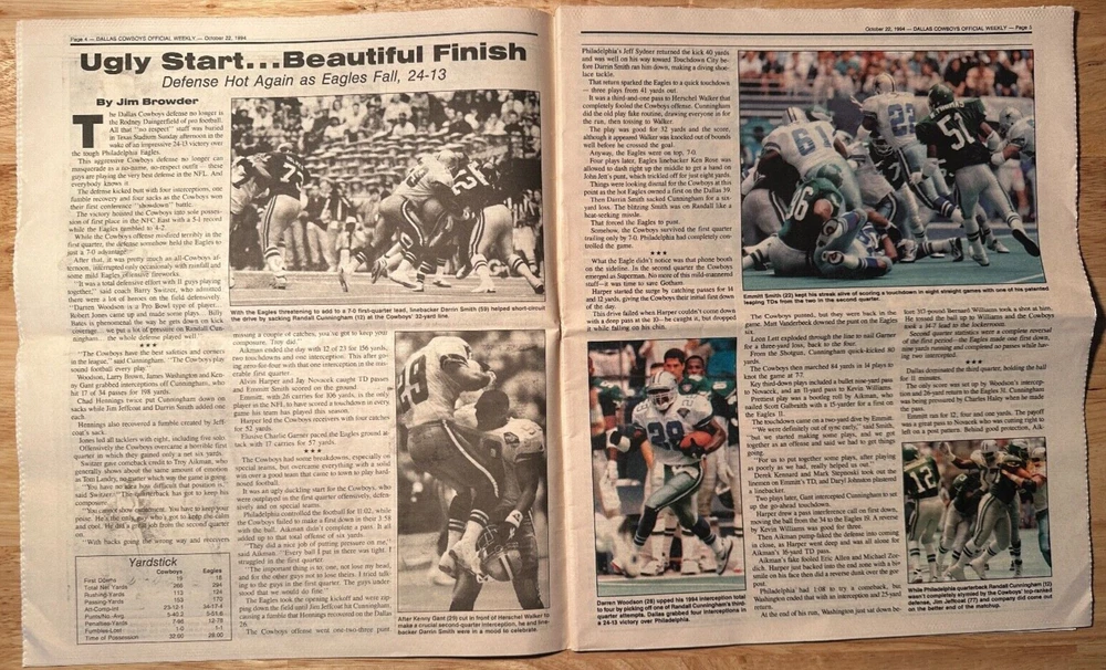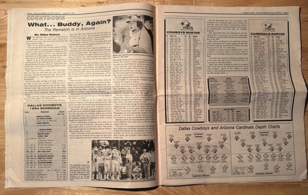 Up for bidding is a 1994 Dallas Cowboys Weekly. Loaded with articles and photos. In used condition - see scan. Issue has some tearing at the top - see scan
