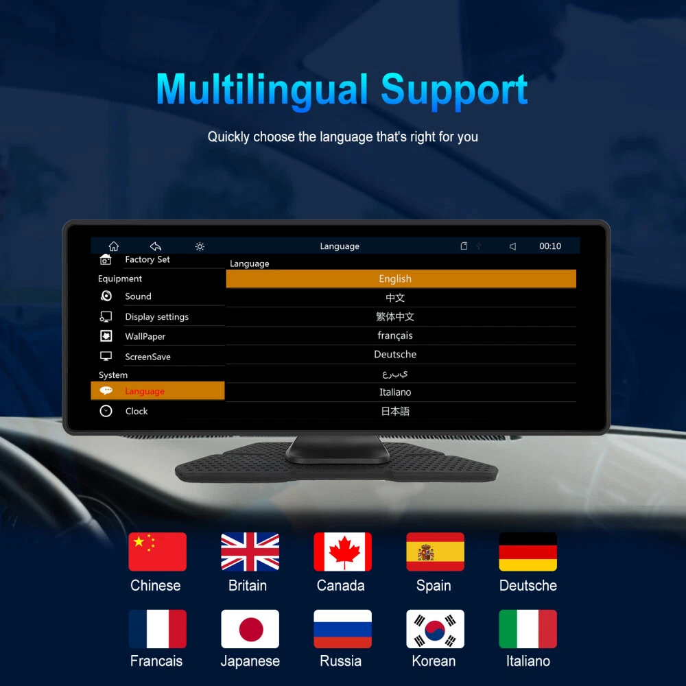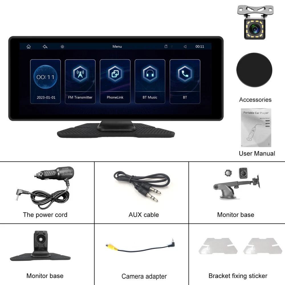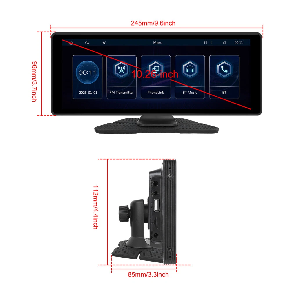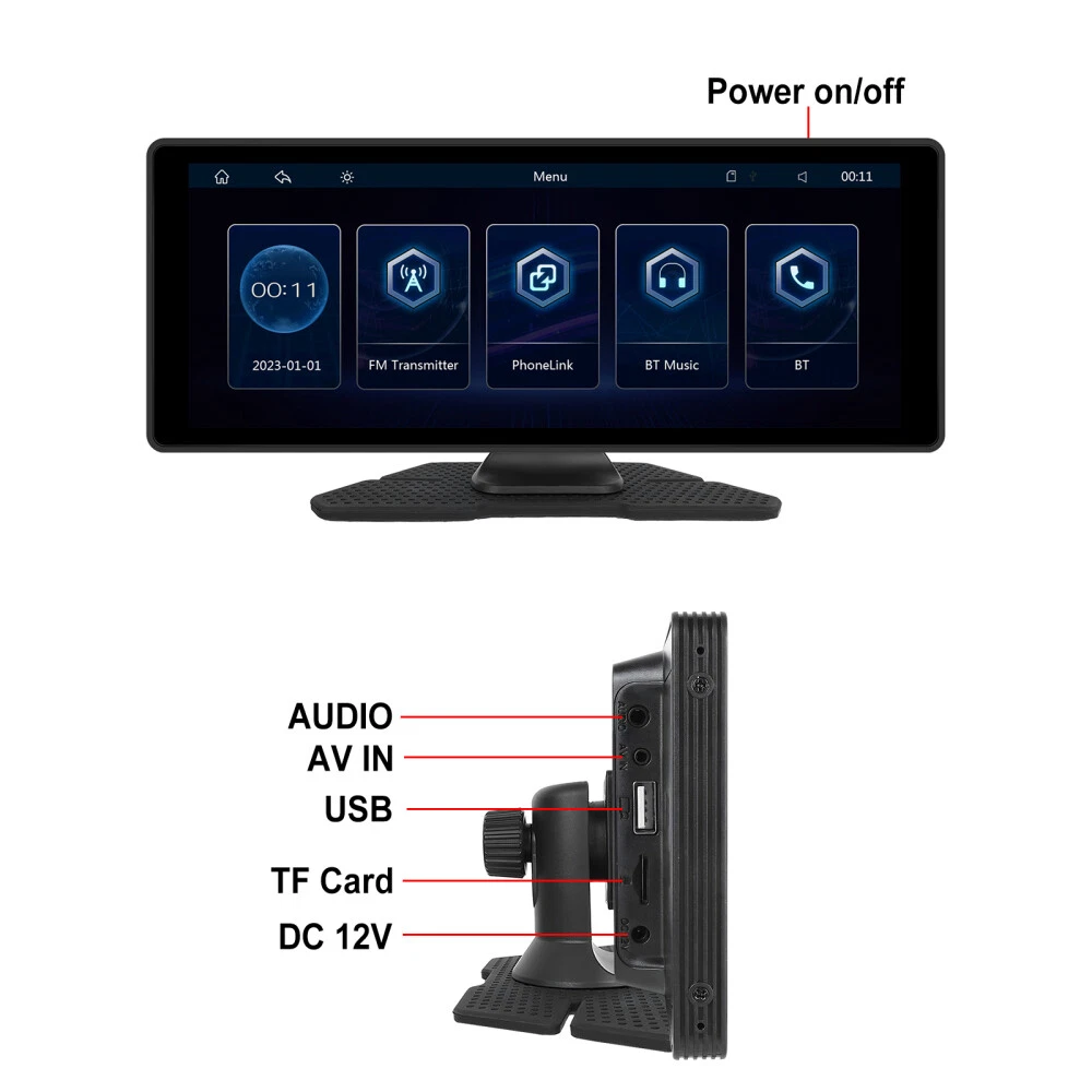 10.26" Touch Screen Wireless Apple Carplay Portable Car Stereo Android Auto