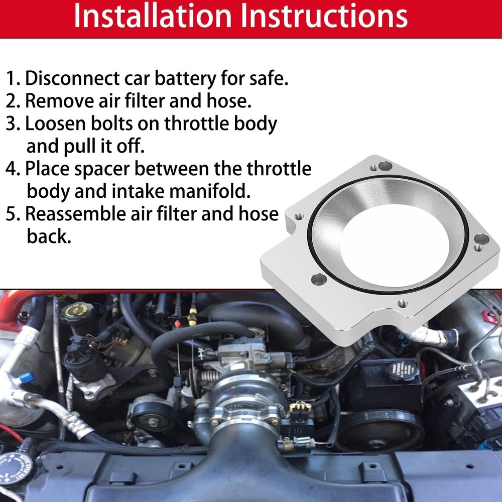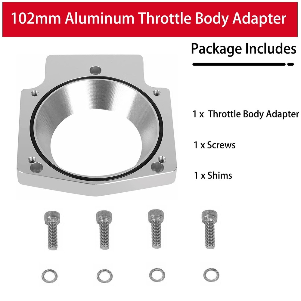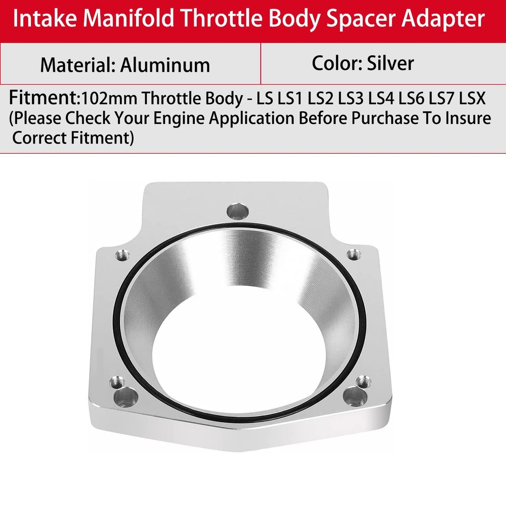 Description: 100% Brand New Color: Silver Chevy / GM 102mm Throttle Body Aluminum Plate Space Adapter Direct Bolt-On Fitment; No Modifications Required Allows The Use Of A LS2 Style Throttle Body To Be Used With An LS1/LS6 Style Intake Manifold 3/4" Thick And Milled On Every Side To Ensure A Perfect Seal The Port Size Is 102mm On The Throttle Body Side And Tapers To Match The 75mm Port On The Intake Manifold Work With Any 3 Bolt Intake Manifold (LS1, LS6, Truck Style) And 4 Bolt Throttle Body (LS2, LS3, LS7, L92, L99, L76) Requires The Purchase Of A 75mm - 102mm Throttle Body - Will Not Directly Bolt On No Installation Guides Are Included, We Highly Recommend To Seek Professional Installation Fitment: 102mm Throttle Body - LS LS1 LS2 LS3 LS4 LS6 LS7 LSX Please Check Your Engine Application Before Purchase To Insure Correct Fitment Package included: 1 x Throttle Body Spacer Adapter The Port Size Is 102mm On The Throttle Body Side And Tapers To Match The 75mm Port On The Intake Manifold Work With Any 3 Bolt Intake Manifold (LS1, LS6, Truck Style) And 4 Bolt Throttle Body (LS2, LS3, LS7, L92, L99, L76) Requires The Purchase Of A 75mm - 102mm Throttle Body - Will Not Directly Bolt On Fitment: 102mm Throttle Body - LS LS1 LS2 LS3 LS4 LS6 LS7 LSX (Please Check Your Engine Application Before Purchase To Insure Correct Fitment) 100% Satisfaction: If you are not satisfied with our throttle body adapter plate kit, please contact us, we will try our best to solve your problem