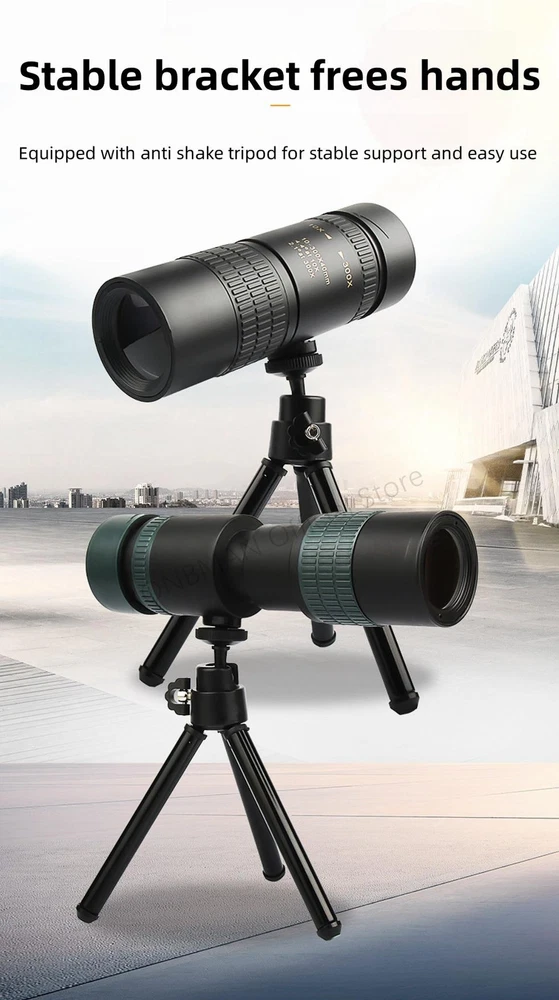 Free and fast shipping , shipping take up 1-7 Business Days 30 Day Return Accepted EASY PAYMENT via PayPal, Credit Card, PayPal Credit, Google Pay... 10-300x Zoom Monocular Telescope Travelling Plastic Multicolor Modern Waterproof 10-300X Zoom High Definition Powerful Binocular Telescope Remote Portable High Quality Professional Hunting Monocular Telescope Product parameters Objective lens diameter: 30mm Eyepiece diameter: 15mm Objective lens coating: FMC broadband green film Eyepiece coating: Blue film Prism material: BAK-4 Prism system: Roof ridge system Focusing method: Rotating focusing/Stretching focusing Close range: 2 meters Tripod interface: 1/4 standard screw Product material: ABS plastic steel material Product color: Black Product size: 128/168x43mm REVIEWS The product came very well packaged. I'm very happy. thank you for everything. Seller strongly recommended. This is great! I definitely recommend! Product looks amazing Delivery was fast. Excellent seller, great communication. I advise everyone to buy it!