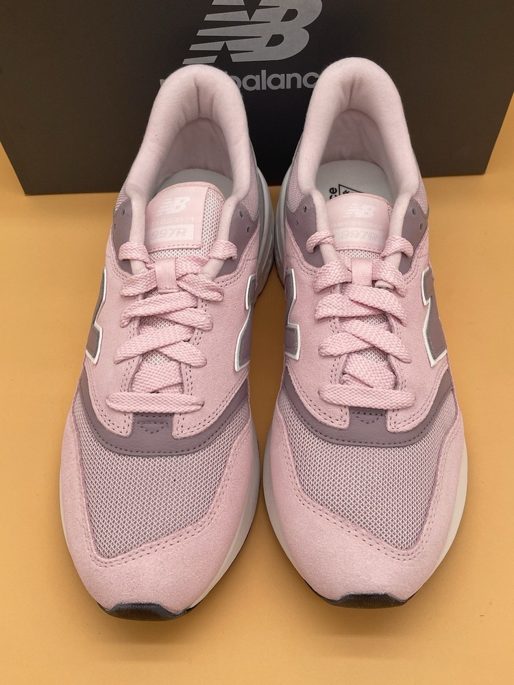 The product is a pair of New Balance 997R sneakers in size 10.5 for men or 12 for women. These lifestyle shoes feature a lace-up closure and a pink color with purple accents. Made with suede upper material, they are designed for athletic use and suitable for activewear or casual occasions. The sneakers belong to the New Balance Lifestyle product line and are ideal for wearing in the summer, fall, or spring seasons. UK 10 EU 44 1/2 Brand New with Box
