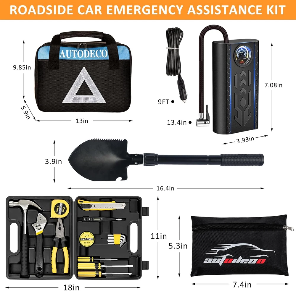 Store New Arrivals Add to Favorite View Feedback Contact 105 PCS Roadside Car Emergency Assistance Kit with Portable Air Compressor Jumper Cables Description Number of Pieces 105 Included Components Whistle, Blanket, Gloves, Bandage, Adhesive Tape, Scissors, Tweezer What you will get: This set contains first aid supplies and car repair kits, suitable for most sudden automotive emergencies Safe jumper cable: The cable surface is covered by PVC material and the interior is made of premium copper wire . It works even in winter Multi-purpose emergency kit: This emergency kit is a ideal car accessory for every driver. It is suitable for different occasions, like winter weather, commute and road trips Easy to carry: This emergency rescue kit is lightweight and compact. Can be placed in the back seat, trunk or even spare tire compartment Perfect souvenirs: As a practical and necessary tool for easy storage and portability, it would certainly make a great souvenirs for a new driver or a friend who needs something in their vehicle to prepare for the unexpected Product Description ABOUT US We offer the best prices around on high quality products. Our E-store includes media such as books, movies, music and games while offering electronics, toys, sporting apparel, clothing, tools, general home, garden items and more. SHIPPING We are always working hard to ensure your package arrives as soon as possible. Please understand that some factors like weather, high postal traffic, and the performance of shipping companies are outside of our control. We offer free shipping to the lower 48 states and ship within 2 business days of payment, usually sooner. We do not accept P.O. Boxes. Please provide a physical address. For shipping outside of the continental USA, we only use eBay's Global Shipping Program.The item is shipped to KY and then sent to the rest of the world. International customers are responsible for all duties and taxes. Continue to check out in order to calculate costs for shipping the item to your country. Messages regarding eBay's Global Shipping Program MUST be directed at eBay EXCLUSIVELY. RETURNS We offer a 30-Day Return Policy on items which you are not completely satisfied with. You have the option for a full-refund or an exchange of the item. No returns are available on items shipped outside of the USA. PAYMENT We accept PayPal. CONTACT US This page content is yet to come Please ad us to your favorite seller and visit again later Thank You CUSTOMER SATISFACTION We try our very best to make sure every customer is completely satisfied. If there's a problem, message us! We're happy to help. WE ACCEPT Copyright © 2021 AutoDS. | All Rights Reserved