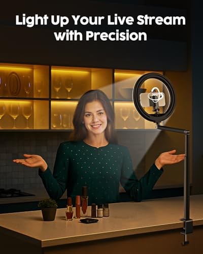 Return Policy Fast Delivery Trusted seller 10.5" Ring Light Overhead Phone Mount - Selfie Ring Light with Stand Phone Holder, 360° Rotate Flexible Arm Clamp Desk Light Tripod for Photography Cooking Filming Video Recording YouTube Tiktok Product Description Professional Shadow-Free Illumination: 10-Inch LED overhead camera mount ring light for phone delivers 360° uniform brightness with no harsh shadows, ensuring crisp, studio-quality visuals. The advanced light diffusion technology enhances color accuracy, sharpens outlines, and highlights intricate details—perfect for photography, makeup tutorials, product reviews, and video recording. Heavy-Duty Stability & Space-Saving Design: Upgraded Metal C-Clip & Silicone Base, Features a durable metal clamp (adjustable up to 2.34”) with anti-slip silicone padding to securely attach to desks, shelves, or tables without scratching surfaces. The compact design maximizes workspace efficiency for home studios, offices. Dual-Axis Adjustability: The telescopic stand support rotate the overhead tripod led ring light 360° horizontally and tilt the lamp head 180° vertically for precise lighting control. Perfect for overhead filming (e.g., cooking tutorials, unboxings), angled selfies, or side lighting for portrait photography. The telescopic stand effortlessly to hold any position without sagging.(Extendable pole length is 11.42”). 3 Color Temperatures & 10 Brightness Levels: Vimose desk light for iphone switch between Cool White (6000K) for crisp clarity, Warm (3000K) for cozy ambiance, or Daylight (4500K) for natural tones. Adjust brightness from 10% to 100% to match any environment—ideal for live streaming, crafting, baking demos, nail art, or low-light Zoom calls. Universal Phone Mount & Bluetooth Remote Control: Vimose desk tripod for iphone compatible with smartphones 2.16”–3.54” wide (fits iPhone 15 Pro Max, Samsung S24 Ultra, and most devices). Wirelessly control photos/videos from up to 33 feet (10 meters)—ideal for solo creators, fitness videos, group shots, or TikTok/Instagram Reels. 5V/2A Safe Charging: Vimose desk ring light Powered via USB (adapter not included) using a laptop, power bank, or standard 5V charger. Critical Note: Use only 5V power sources (≥2A current) to avoid flickering or overheating. Perfect for travel, outdoor shoots, or backup. All-Inclusive Creator Kit: Includes 10" led ringlight, overhead bracket, phone holder, bluetooth remote and manual. Ready to use straight out of the box. Shipping Returns Payment Shipping Shipping is FREE to all addresses other than APO/PO boxes in the lower 48 states. All our stock ships from US-based warehouses. Shipped via USPS or UPS (depending on location and package weight) Unless stated otherwise, all orders will ship within 24-72 hours of your payment being processed. Check our feedback to see the great reviews of FAST shipping we offer. Returns Seller does not accept returns Payment We currently accept payment via eBay managed payments only. Once payment is cleared, we will dispatch your shipment within 1-3 business days. Please refer to the "Shipping" tab for more information regarding shipping speed to your destination.