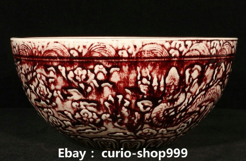 **** Welcome to our antique & Collectable Shop : Porcelain**** Description: Here is 10.5" Yuan Dynasty Red Glaze Porcelain Dragon Loong Beast Animal Wine Tea Bowl. It is in good condition, and was created by skilled craftsmen in traditional style with fine handcrafts.This is a great piece of valuable collection, a valuable personal alter or a very good present. the handwork is very fine with incredible detailling. Don't miss out this chance to get it.Wish you good luck! . Material : Red Glaze Porcelain Size : Heigh t 4.9 Long 10.5 B readth 10.5 (inch) Condition Perfect Condition. Perfect, with no scratches, flaws or repairs. Weight: 2.1 KG----included the weight of packing materials Shipping cost to all over the world countries in Free Honored Customers: We are selling the collectibles products and crafts in Beijing ,China since 1993 and collected them all over the world all the time . In our shop the bronze sculpture, animal, vase, urn, flowerpot,Incense Burner.Table chair sets. Militaria goods. buddha statues, Bodhisattva Statues, Buddhist Ritual Items etc is our speciality .Many of the items we sell come from our own personal collection and have been in our family for a very long time .My great-grandfather was the first in this family to start collecting art & antiques when he still lived in San Xi and Tibet around 1922 ,some of the paintings he once collected can now be seen in museums around the globe.We won't make money from t he shipping cost, if you dislike the item when you receive it,we can refund all of your money to you within thirty days. Please confidence for bidding . We recommend the combine shipping and offer you an big price discount if you order more items together ! 2025.02.17 四 号