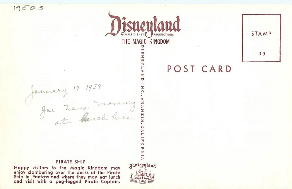 A Vintage Printed postcard as described in title, additional info is below- Publisher-photographer--Artist---Disneyland Stamp box card #----- D-9 All our cards are shipped in either, a card stiffened envelope, or packages valued at $24.99 and up will be in a Rigid Shipping Envelope.
