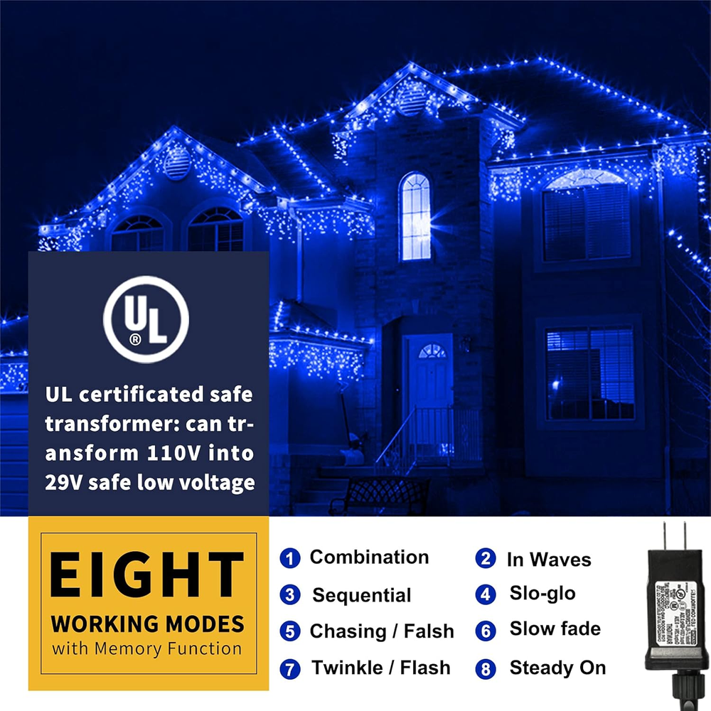 Store New Arrivals Add to Favorite View Feedback Contact 105Ft 300 LED Christmas String Lights, End to End Plug 8 Modes Christmas Lights UL Certified Outdoor Indoor Fairy Light Christmas Tree, Patio, Garden, Party, Wedding, Holiday (Blue) Description Light Source Type LED Item model number QL300AE Style Modern Number of Items 1 Power Source Corded Electric Number of Light Sources 300 Control Method Touch Warranty Description 1 years. Theme Christmas Halloween Batteries Included? No Usage Indoor and Outdoor Controller Type Remote Control Batteries Required? No Bulb Shape Size C9 Material Plastic Seasons Christmas Form Factor String Included Components Controller, Remote Control Item dimensions L x W x H 5.71 x 3.35 x 6.1 inches Indoor/Outdoor Usage Outdoor, Indoor Bulb Base E12 Country of Origin China Light Color Blue Water Resistance Level Waterproof Item Weight 10.4 ounces Connectivity Technology Power Cord Occasion Christmas Halloween Special Features waterproof Special Feature waterproof Part Number st-ting-l89 Color Blue Voltage 29 Volts Product Dimensions 5.71 x 3.35 x 6.1 inches Size 105 FT 8 Lighting Modes With Memory Function: Our upgraded string lights with 8 different working modes: combination, in waves, sequential, slo-glo, chasing/flash, slow fade, twinkle/flash, steady on. The controller is designed to remember the last setting after cutting off the power. No need to set the light again. Long Length & End to End Expandable:Longer wire + more LEDs. This super long 105ft fairy string lights with 300 warm white individual LED bulbs. And each Christmas light has end-to-end connection that allows up to 4 strands connected together to illuminate a wider range. They will brighten up the dark corner for happiness atmosphere inside or outside. 29V Low Voltage and UL Certified, Safe to Use:New generation 29V low voltage transformer and whole set string lights including string wire, LED bulbs and plug have been certified by UL to ensure & maximize the safety. Meets UL588 standard for safety of Holiday/seasonal decorative light, much safe to use. Perfect for Christmas, halloween, Easter, weddings, party, festival, holiday decoration. Durable and Weather Resistant:Waterproof designed starry lights perfect for both indoor and outdoor decorations. The strong construction makes it tough and sturdy, not easy to break apart and overheat after long hours of usage. They are strong enough to provide years of high quality lighting. Satisfaction Service:We stand behind all our products. If for any reason you are not completely satisfied, let us know and our customer service team will help you return or . No questions asked, no hassle. Take it risk free. Product Description XTF2015 105ft 300 LED Christmas Lights, Outdoor Indoor Fairy Lights for Christmas Tree, Patio, Garden, Party, Wedding, Holiday (Blue) Bringing the warm atmosphere inside or outside Decoration of house, company, party, wedding, Christmas, festival, holiday, commercial decor, home, garden, patio, lawn, porch, gate and yard. · 8 modes for choosing: Compare with other single mode string lights. Our led string lights bring 8 light modes to feed your needs: combination, in waves, sequential, slogs , chasing/flash, slow fade, twinkle/flash, and steady on. · Memory Function: The controller is designed to remember the last setting after cutting off the power. You don't need to worry about re-set. · Easy to use: Directly plug in and unplug it for power on and off Ideal Length & High Brightness 105 feet long string with 300 warm white individual LED bulbs. And each Christmas light has end-to-end connection that allows up to 4 strands connected together. Ideal to decorate your yard, patio, deck, front porch, living room, etc. 29V Low Voltage and UL Certified, Safe to Use This fairy light is completely UL Certified (including String Wire, LED Bulbs and Plug) and really safe low voltage 29V transformer for safe use in your home. It will not overheat after long time use. Perfect for use at Christmas, Easter, other celebration events or simply to give your home a warm inviting glow. Highly Waterproof Designed All of our string lights are constructed with high quality material and designed to withstand rain or heat, so you can confidently leave them on display through summers and winters. Perfect for indoor & outdoor decoration. Christmas Tree Lights Christmas House Decorations Christmas Yard Lights Decorations Christmas Lights Indoor ABOUT US We offer the best prices around on high quality products. Our E-store includes media such as books, movies, music and games while offering electronics, toys, sporting apparel, clothing, tools, general home, garden items and more. SHIPPING We are always working hard to ensure your package arrives as soon as possible. Please understand that some factors like weather, high postal traffic, and the performance of shipping companies are outside of our control. We offer free shipping to the lower 48 states and ship within 2 business days of payment, usually sooner. We do not accept P.O. Boxes. Please provide a physical address. For shipping outside of the continental USA, we only use eBay's Global Shipping Program.The item is shipped to KY and then sent to the rest of the world. International customers are responsible for all duties and taxes. Continue to check out in order to calculate costs for shipping the item to your country. Messages regarding eBay's Global Shipping Program MUST be directed at eBay EXCLUSIVELY. RETURNS We offer a 30-Day Return Policy on items which you are not completely satisfied with. You have the option for a full-refund or an exchange of the item. No returns are available on items shipped outside of the USA. PAYMENT We accept PayPal. CONTACT US This page content is yet to come Please ad us to your favorite seller and visit again later Thank You CUSTOMER SATISFACTION We try our very best to make sure every customer is completely satisfied. If there's a problem, message us! We're happ
