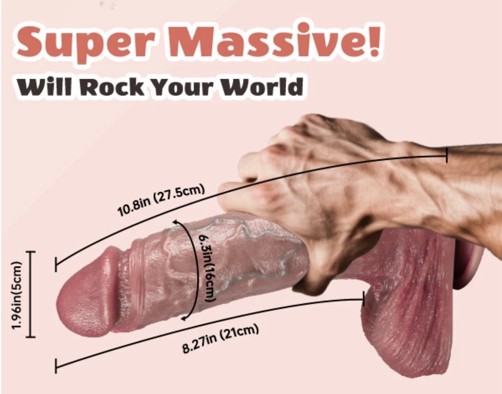 10.8 Inch Realistic Huge Dildo Sex Toy - Safety Material 6.3 Inch Girth Thick Dildo for Vagina and Anal Play with Strong Suction Cup, Big Penis Adult Sex Toys for Women Men Couples Sexual