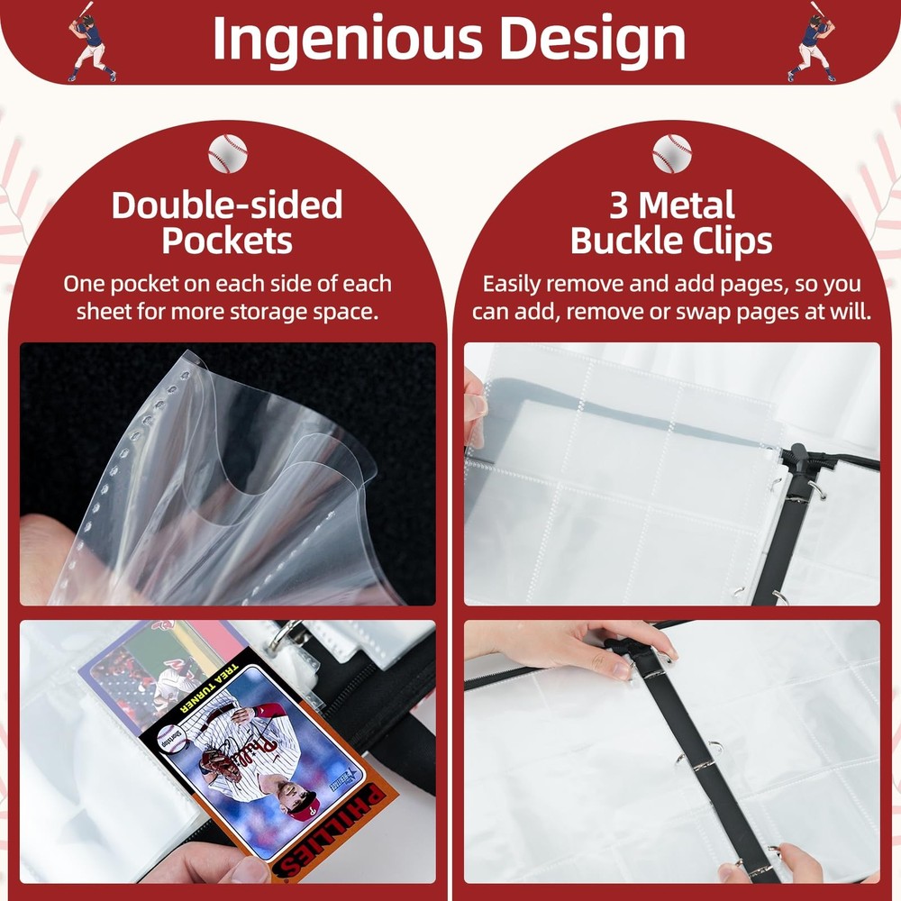 Baseball Card Binder with 900 Pockets 9-Pocket Trading Card Holder