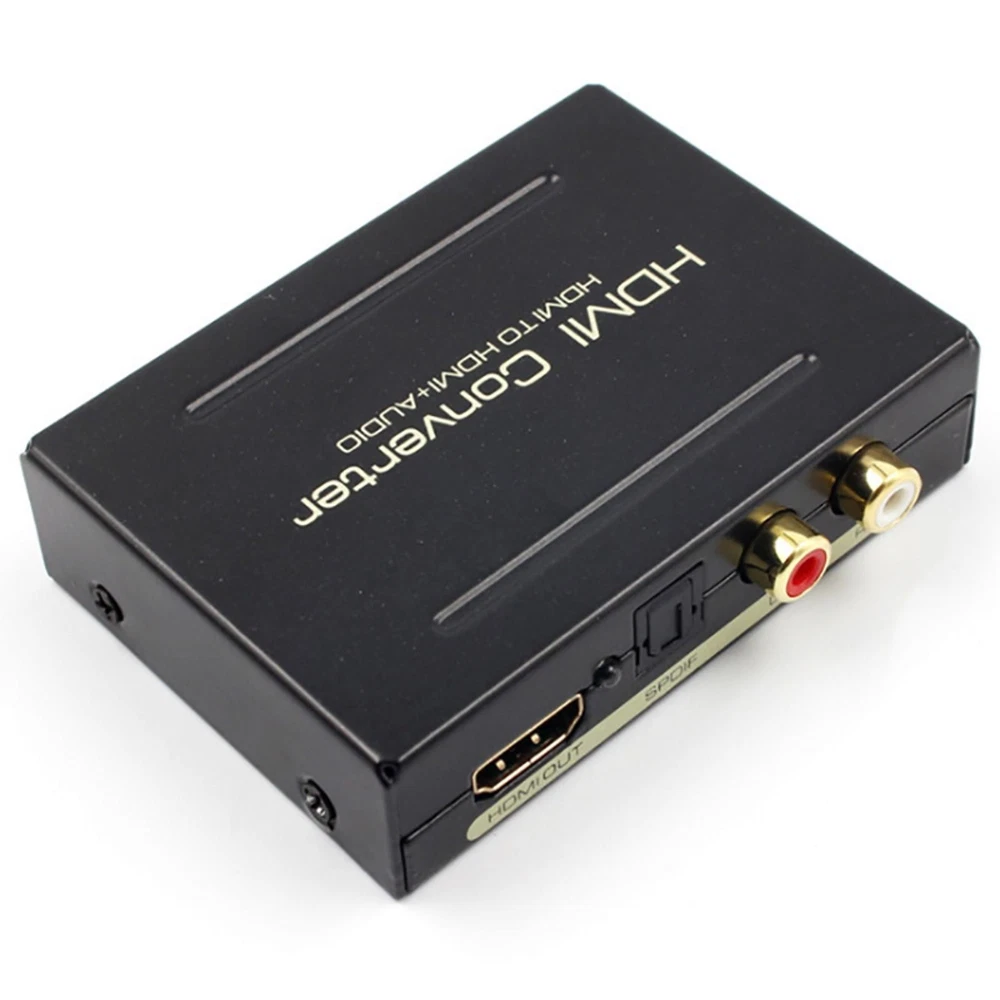 NEW-00023 1080P HDMI To HDMI+SPDIF+ R/L Analog Audio Output Converter Connecter Splitter c PRODUCT DESCRIPTION Description: One HDMI input convert to one HDMI + Audio (SPDIF + R/L) output One audio support: SPDIF + R/L analog Audio Output Input Resolution: Up to 2160P. HDMI to achieve the synchronization of audio signal separation. There are PASS / 2.0CH / 5.1CH three kinds of audio mode options. LED indication: When source of sink is working, corresponding LED is light. Supports for Apple TV and various Blu-ray player. Input Resolution: Up to 2160P. Need DC5V / 1A power input (We only offer a Power USB cable) Specification: HDMI resolution: 24/50 / 60fs / 1080p / 1080i / 720p / 576p / 576i / 480p / 480i Support video color format: 24bit deep color 30bit,36bit Audio output: L/R+SPDIF Max bandwidth: 225MHz Max baud rate: 6.75Gbps Input/Output TMDS signal: 0.5~1.5Volts p-p(TTL) Input/Output TMDS signal: 0.5~1.5Volts p-p(TTL) Input cable distance: ≤15m AWG26 HDMI standard cable Output cable distance: ≤20m AWG26 HDMI standard cable Power Supply: DC 5V (Need DC5V/ 1A power input, We only offer a Power USB cable) Max working current: 500mA Power adapter format: Input: AC(50/60Hz)100V-240V; Output: DC5V/1A Operating Temperature range: (-15 to +55°C) Operating Humidity range: 5 to 90%RH(No Condensation) Dimension(LXWXH): about 84.5 x 61.8 x 21(mm) Weight: about 135g Package included: 1 x HDMI Converter 1 x USB Power Cable 1 x User Manual Shipping Contact Us Our products have been sent to the US warehouse. All items will be shipped via WINIT CORPORATION. In 2-5 working days, you will receive your items. Thank you and have a nice day. If you have any question about us or items, please contact us, we will reply it as soon as possible. Shipping Our products have been sent to the US warehouse. All items will be shipped via WINIT CORPORATION. In 2-5 working days, you will receive your items. Thank you and have a nice day. Contact Us If you have any question about us or items, please contact us, we will reply it as soon as possible. PaymentShippingReturn policyAbout usContact us Copyright © - Tongtool All rights reserved | Design:Tongtool