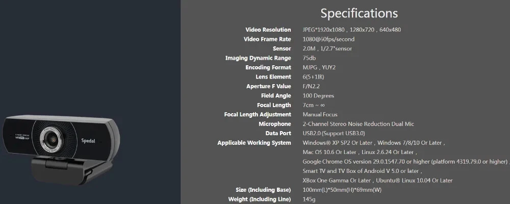 Specifications Hign-concerned Chemical none Auto Focus No Package Yes Interface Type USB Image Sensor CMOS Pixels 2 Mega Max. Resolution 1920x1080 Brand Name Spedal Origin Mainland China Certification CE,FCC,RoHS Video Frame Rate 60fps Type camera webcam Model webcam for laptop Microphone webcam microphone Full hd 1080p 60fps webcam Type1 Webcam laptop Desktop webcam Fps 60fps webcam Software Free Software
