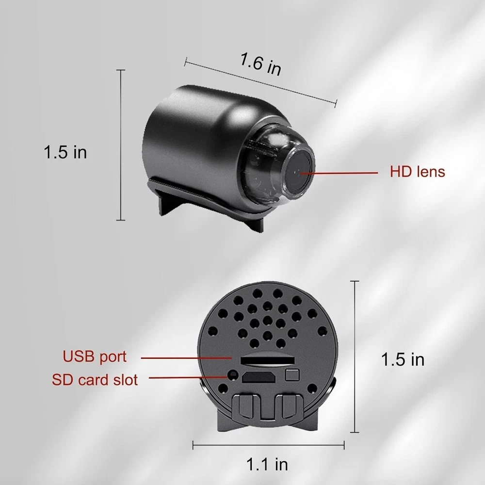 【 Mini Small Design 】 : The camera's compact size makes it practically invisible, allowing you to monitor your surroundings without drawing any. Its sleek and discreet design ensures seamless integration into any indoor environment. No battery inside. 【 Remote View 】 : Monitor your camera's feed through our dedicated mobile app, compatible with both iPhone and Android. Stay connected and watch live or recorded video footage remotely, giving you the ultimate flexibility and peace of mind. 【 SD Card Storage 】 : This mini small camera supports SD card for video recording, allowing for easy playback of recorded videos, ensuring you never miss a detail. 【 Easy Setup and Operation 】 : This Mini Small Hidden Camera can be easily set up within minutes, with no technical expertise required. Simply connect it to your wireless network and monitoring right away. 【 Multi-Functional Monitoring 】 : This compact camera is perfect for discreet placement in various locations such as bathrooms, bedrooms, shower rooms, living rooms, and offices. Monitor your space, loved ones, pets, and belongings with confidence using our reliable and versatile mini hidden camera.