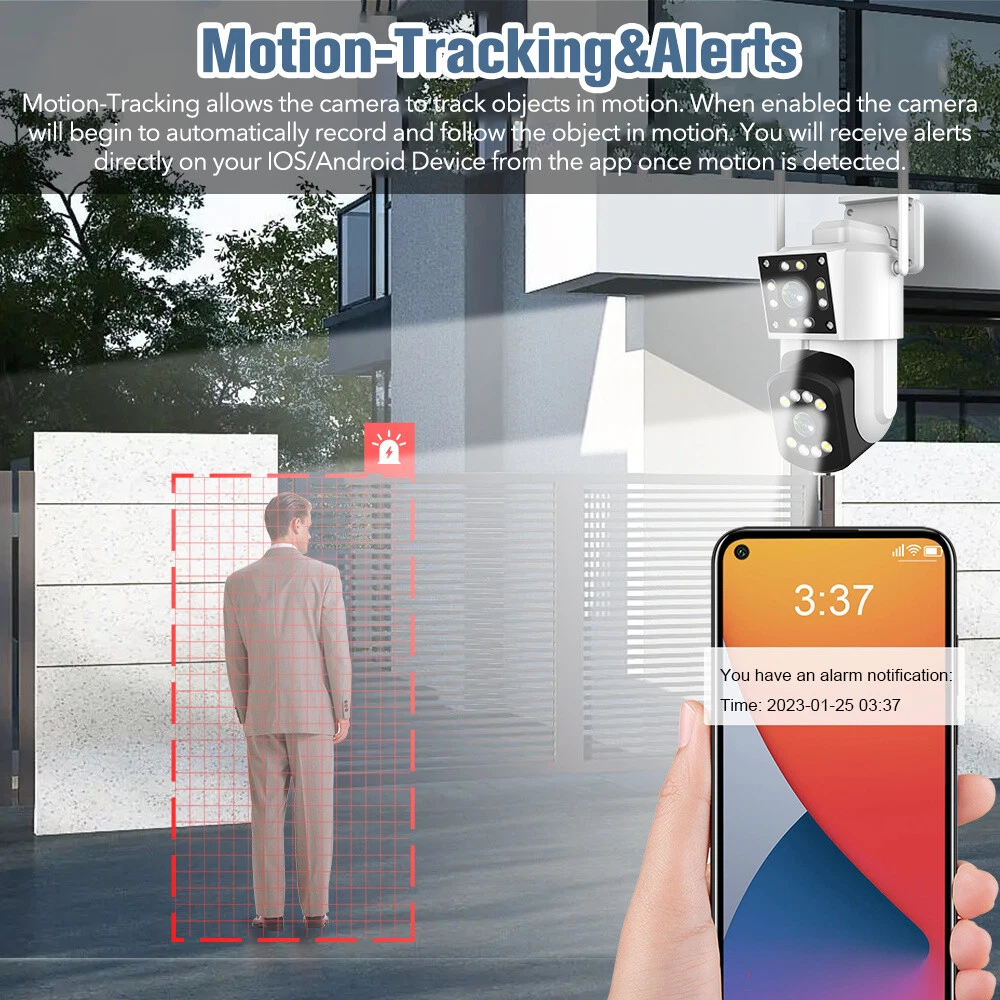3MP HD Dual Lens Screen Wireless Security Camera System Outdoor Waterproof Home WiFi Night Vision CCTV Onvif PTZ Cam Features: 1. 3MP Dual Live Video Lingage: Double cameras can view and control two video display at the same time. Wide-angle camera is for global monitoring. The PTZ camera will automatically track and zoom.3MP high-definition lens, 2304x1296 resolution provides 2K quality and more vivid details. 2. 355°Horizontal + 90°Vertical Rotation: 355° horizontal & 90° vertical rotation range cover a much bigger vision range with less blind area. 3. Three Night Vision Modes & Garden Lights: 1080P Wireless Camera PTZ Outdoor WiFi Security Camera System CCTV Night Vision 3MP HD Dual Lens Screen Wireless Security Camera System Outdoor Waterproof Home WiFi Night Vision CCTV Onvif PTZ Cam Features: 1. 3MP Dual Live Video Lingage: Double cameras can view and control two video display at the same time. Wide-angle camera is for global monitoring. The PTZ camera will automatically track and zoom.3MP high-definition lens, 2304x1296 resolution provides 2K quality and more vivid details. 2. 355°Horizontal + 90°Vertical Rotation: 355° horizontal & 90° vertical rotation range cover a much bigger vision range with less blind area. 3. Three Night Vision Modes & Garden Lights: surveillance wireless camera assures clear images and blur-free videos within 66FT/20M in low light. It features three night vision modes, smart, infrared and full-color modes. 4. Motion-Tracking&Alerts: Motion-Tracking allows the camera to track objects in motion. When enabled the camera will begin to automatically record and follow the object in motion. You will receive alerts directly on your IOS/Android Device from the app once motion is detected. 5. 24/7 Local Storage & Two-way Audio - Supports SD card (not included) to ensure that all your videos are securely protected, you can check out those important moments anytime. The security cameras wireless outdoor has built-in upgraded microphone and speaker, helps you communicate with people and intimidate intruders through the app. 6. Easy Installation & IP66 Waterproof: No network cable (power cable required), with mounting bracket, plug-in installation is more convenient. Windproof, sand-proof and rainproof, Home Security Cameras work well in extreme weather. Specification: Resolution: 3MP/300W Sensor: CMOS Lens: 4MM View angle: 90° Pan-tilt: Horizontal: 355° Vertical:90° WaterProof: IP66 LED quantity: 8pcs white LED + 8pcs Infrared LED. Connectivity: Wi-Fi, RJ45 Wired WiFi connection: AP hotspot direct connection/wireless WiFi connection WiFi Operating Frequency: 2.4GHz WiFi Standard: IEEE 802.11a/b/g/n Onvif: Support Night vision:IR-CUT switch Automatic,about10-30meters (It varies from environment). Three Night vision Model: infrared night vision、Full-color night vision、Sound and light alarm night vision Audio: Built-in microphone and speaker, support two-way audio and real-time transmission,Clear and delay free two-way audio. Humanoid detection: mixing line, area, two-way flow detection, for human form, the item triggers no alarm. Storage: TF Card (up to 128G, not included), Cloud Storage(optional) Supported Mobile Systems: Android/ios. Package Included: 1*Dual Lens Wifi Camera 1*Power Supply 1*English Manual 1*Screws Bag Item Specifics Brand : Unbranded Type : PTZ Model : Y8-2A Connectivity : Wireless Features : 3MP Two-way Audio Three Night Vision Modes Surveillance Technology : PTZ Smart Home Protocol : Wi-Fi Location : Outdoor & Indoor Maximum Resolution : 2304x1296 Storage Capacity : up to 128G, not included Operating Sound Rating : 90 dB Power : 300W Power Source : Wall Plug-In Color : Black View angle : 90° Pan-tilt : Horizontal:355° Vertical:90° LED quantity : 8pcs white LED 8pcs Infrared LED. WiFi Operating Frequency : 2.4GHz Supported Mobile Systems : Android/ios. Color : Black View angle : 90° Pan-tilt : Horizontal:355° Vertical:90° LED quantity : 8pcs white LED 8pcs Infrared LED. WiFi Operating Frequency : 2.4GHz Supported Mobile Systems : Android/ios. Payment We Accept Paypal Only. Shipping We will ship to your eBay address. Please make sure your eBay address is correct before you pay. We will ship out your order within 2 business days after receiving your verified payment (Excluding Weekends and Public Holidays)! Item located in the USA, We will ship out your order via USPS or UPS . It will take 3-8 business days to you. If you can't track your parcel or didn't receive your parcel, please kindly contact with us. Returns We offers 30-day refund, and 1 year manufactured warranty on all products, Warranty period starts from the date of purchase.We are not responsible for any kind of compatible issues, or problems related to any specific software or games. Please check our description carefully before purshing. If there is not anything wrong with our product or description, we wont bear the return shipping. In order to return an item you must contact us to request a Return Merchandise Authorization Number (RMA) Contact Us We try to make sure you have a pleasant shopping experience with us, so that we could do more business with you. If there is any dissatisfaction, please email us. We will try our best to resolve the issues. Please give us the opportunity to resolve any problem. PS. you may contact us by 'Ask a question' FM tranimitter On Sale Store Promotion You may like Store Category Store Home Home&Garden (G&V) Big discount Other Hot Item 360° 1080P E27 Light Bulb Camera 2.4G HD Wi-Fi Home Smart Security Cam Monitor USD 26.22 3MP Wireless Camera PTZ Outdoor WiFi Security Camera System CCTV Night Vision USD 44.06 6MP WiFi Security Camera Outdoor 3x Lens PTZ Auto Tracking IR Night Vision Cam USD 48.63 1-4Pcs Solar Panel Charger for Arlo Ultra/Ultra2/Pro 3/Pro 4 Security Camera USD 23.18 Dual Lens 4K HD WiFi Camera Wireless Outdoor CCTV PTZ Home Security IR Cam USD 38.62 New List Item 6MP 3 Lens WiFi Security IP Camera Outdoor PTZ CCTV Vi