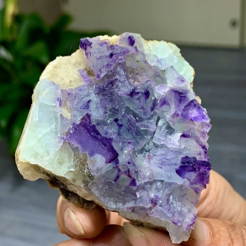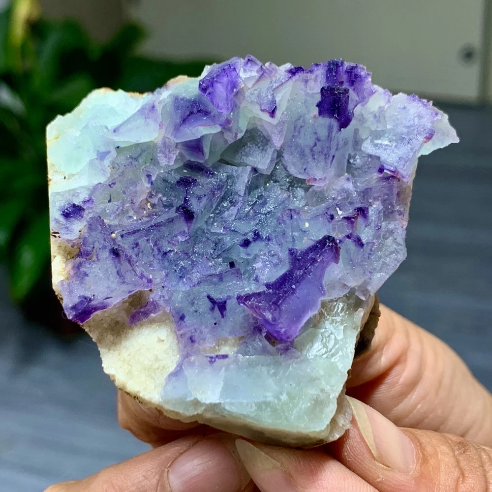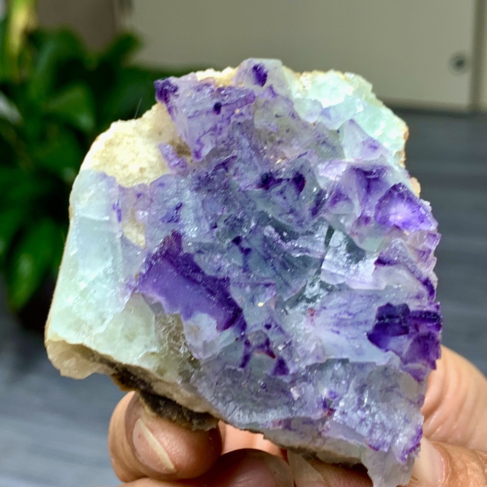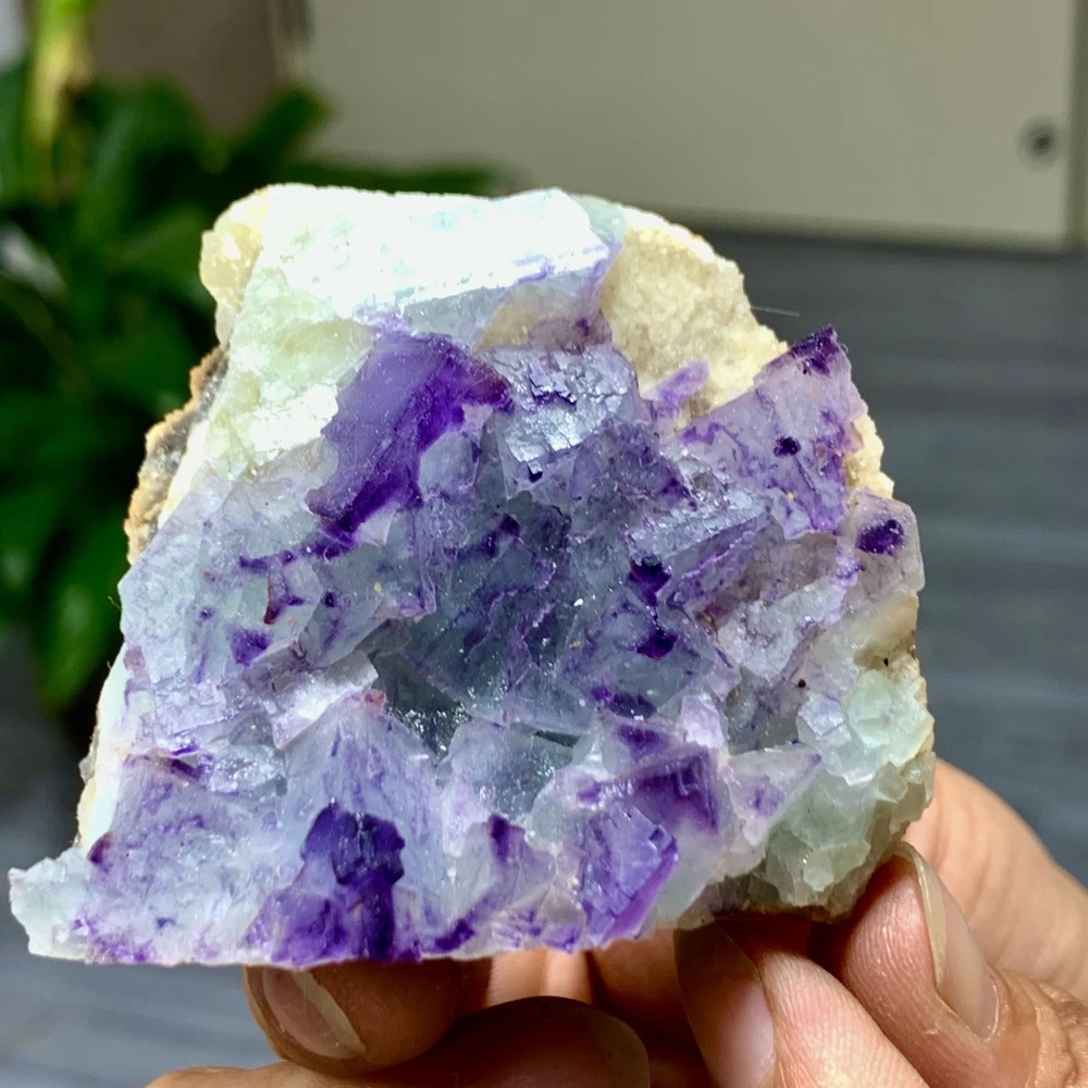 109G Natural Purple QR Code Fluorite Cluster Crystal Mineral Specimen from Guizhou