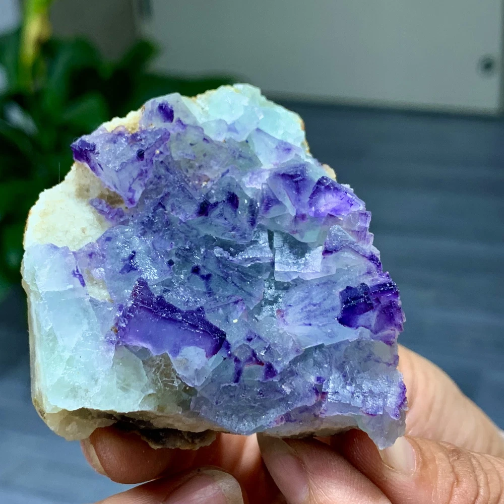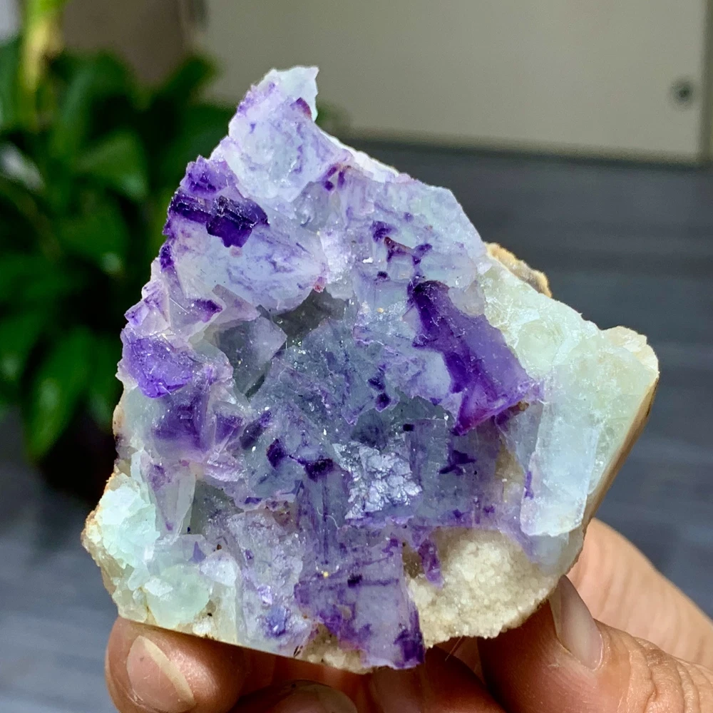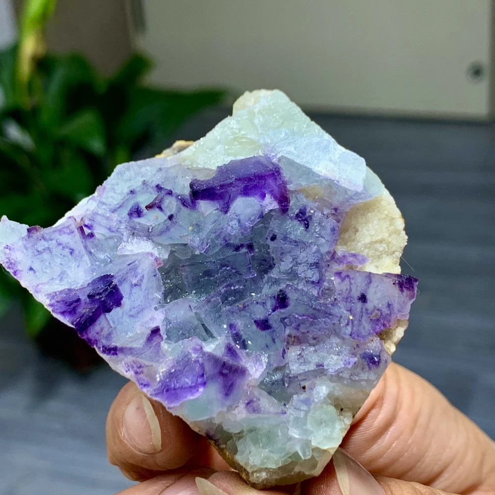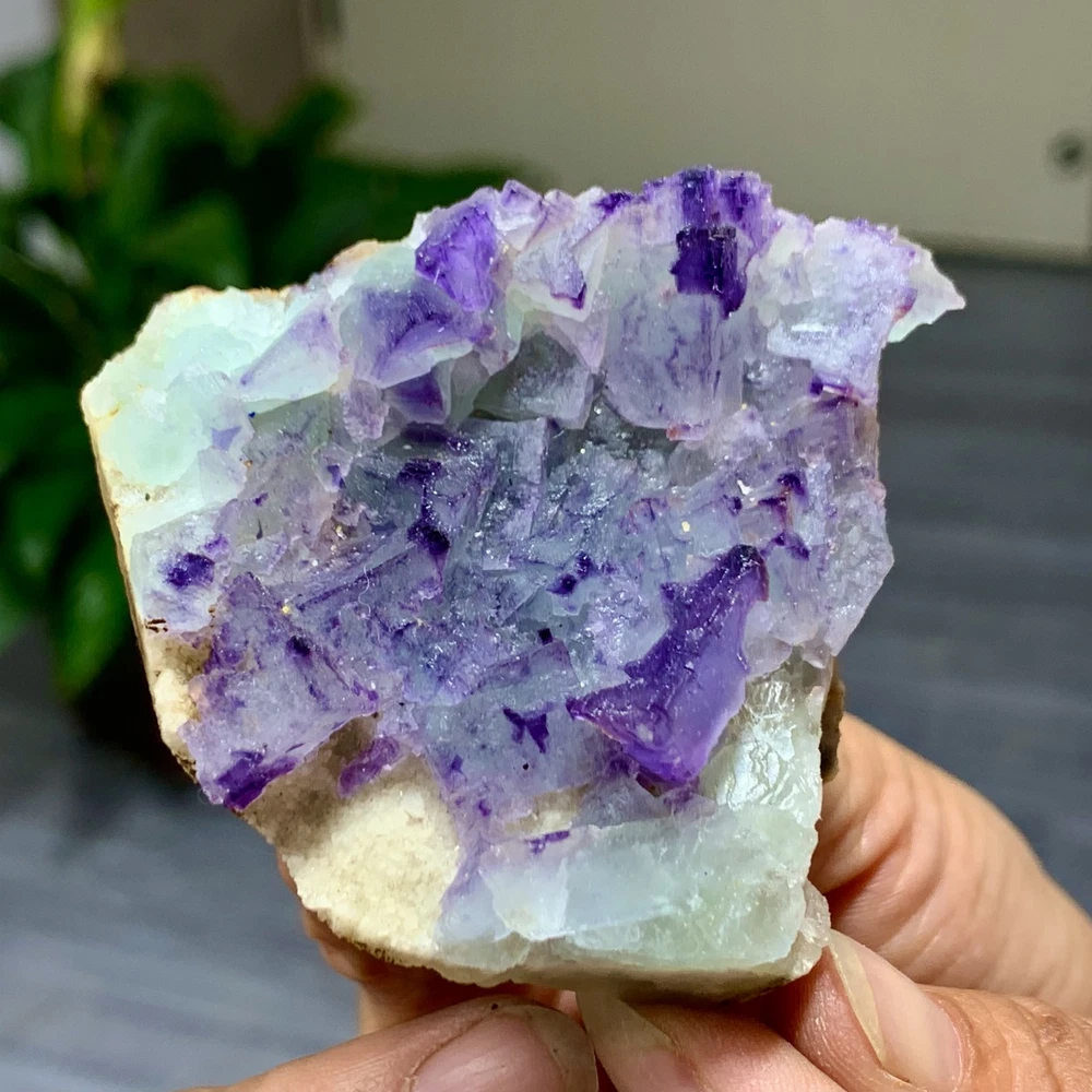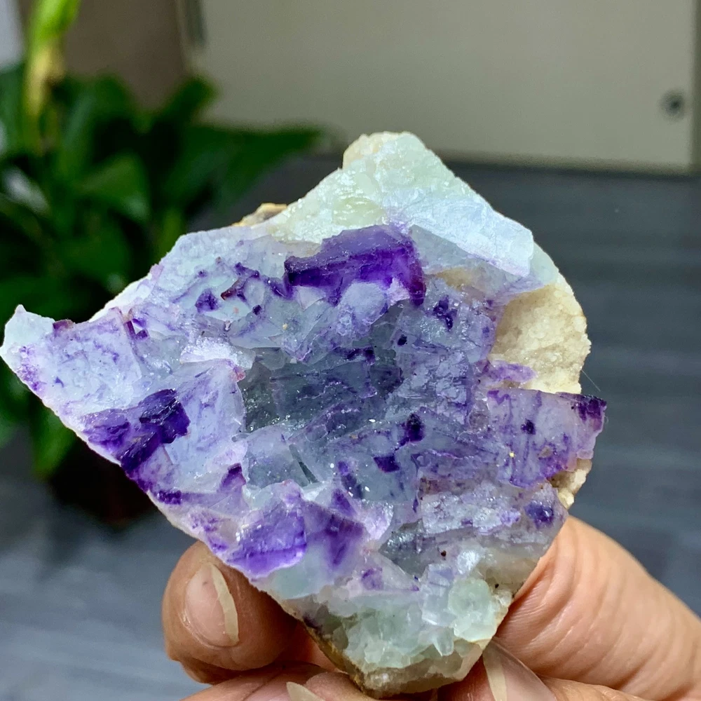 109G Natural Purple QR Code Fluorite Cluster Crystal Mineral Specimen from Guizhou