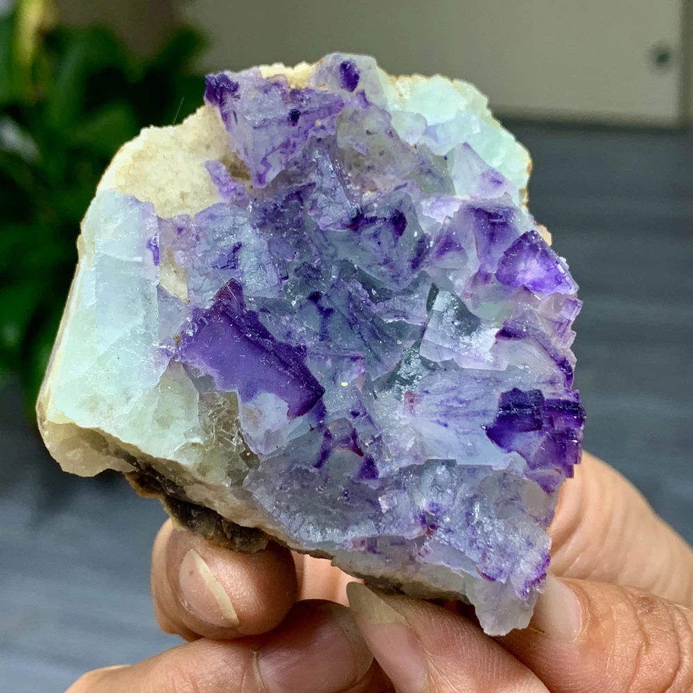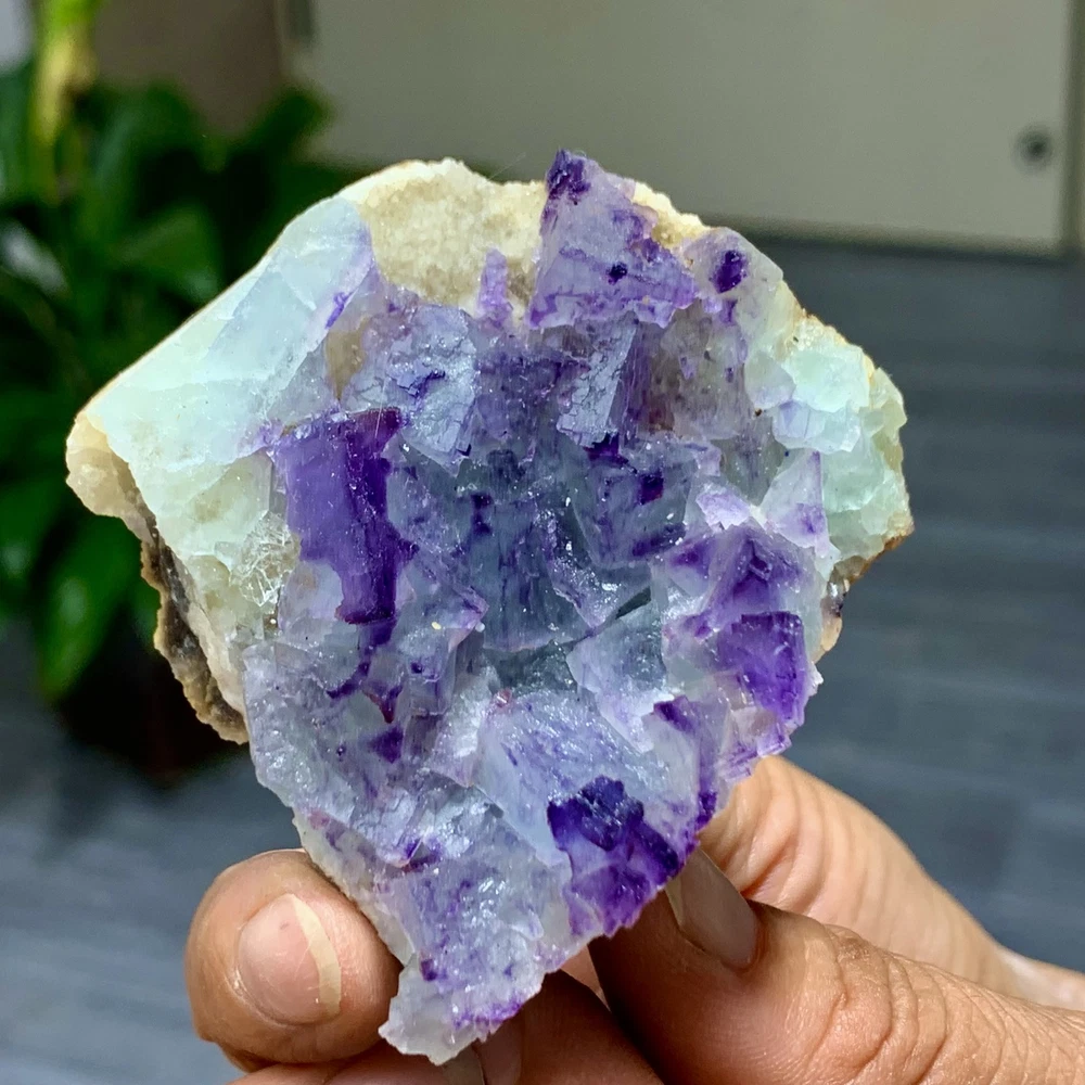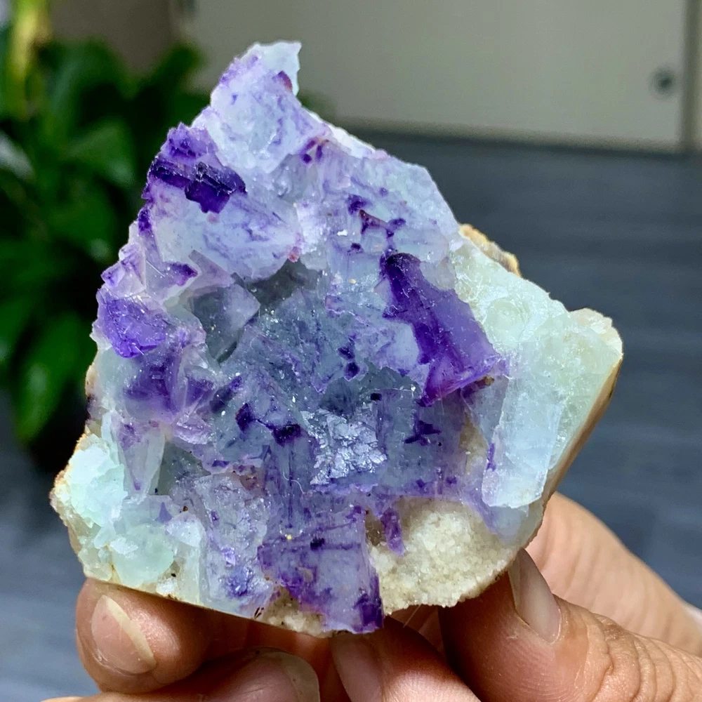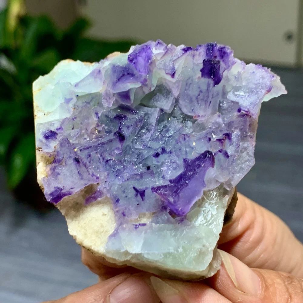 109G Natural Purple QR Code Fluorite Cluster Crystal Mineral Specimen from Guizhou