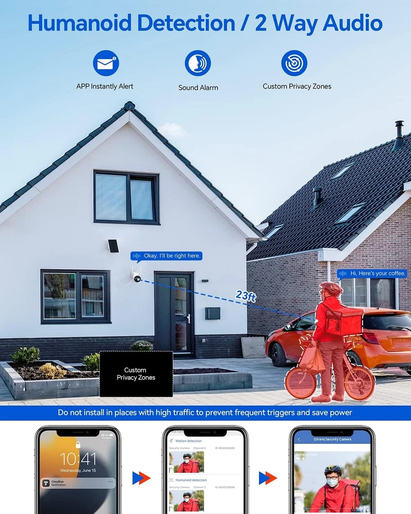 New Releases 8MP 4K 8CH NVR 5MP PT PoE Home Security Camera System AI Humanoid Detection 3TB 246.99 USD 259.99 USD Free shipping 5% off TOGUARD 12"LCD 10CH NVR WIFI IP Wireless Security Camera System Outdoor 1TB HD 237.49 USD 249.99 USD Free shipping 5% off 4MP Wireless Security Camera System Dual Lens WiFi Pro Camera Home Surveillance 265.99 USD 279.99 USD Free shipping 5% off Solar Powered Security Camera Outdoor Wireless System 10CH 10" Monitor Home HDD 313.49 USD 329.99 USD Free shipping 5% off Wireless Solar Powered Security Camera System, Include 6PCS 100% Wire-Free Camera & NVR (Pre-Installed 500GB HDD) , Forever Power, 4MP Color Night Vision, IP66 Waterproof, PIR Motion Detection Ship from US! Fast shipping! 100% Satisfaction! 4MP Wireless Solar Powered Security Camera System, 6PCS 100% Wire-Free Camera Kedwords: đŸ’Ÿ 【Mini NVR & 500GB HDD】 There is a wireless private connection between the NVR and wireless security cameras, which ensures more stable, farther, faster transmission and maximize information security. Equipped with a pre-installed 500GB hard drive, which has enough memory space to store more videos, and supports playback videos up to several years ago đŸ’» 【Support external display】 The NVR supports external display, local viewing is clear at a glance, equipped with a mouse, and supports HDMI high-definition video output. Built-in stereo loudspeakers. It's not necessary to connect to the network when watching locally đŸ“¶ 【Solar Powered & 100% Wire-free】 Wireless security camera system includes 6 rechargeable cameras and 6 solar panels. Solar panels can better extend the battery life of the camera and charge the camera under light. No need for power and network cables when installing, 100% wire-free đŸ”„ 【4MP 32ft 120° color night vision】 4MP (2592×1944P) wireless home security system adopts 4mm lens, 10x digital zoom, 2 LED lamp beads, 5DB antenna. Dual LED light source support 4MP 32ft 120° color night vision. Turn on the spot light in APP to achieve color night vision 🏃 【Smart PIR motion detection & APP instant alerts】 Wireless solar security camera system adopts PIR motion detection. Recording will only be started when a heat source is detected. Then camera system will push an instant alerts to the APP. The PIR induction distance is 32ft 🔊 【Two-way audio & Multi-device sharing】 There are microphones and speakers on the wireless home security camera system which supports real-time response. It will be more convenient for you to communicate with family or guests through the APP. SC17 security system supports multi-device sharing with family members 🔒 【APP remote & custom privacy zones】 Connect NVR to router or connect display to WiFi. Then download the APP and scan the QR code on the NVR to add the device( download "CloudEye" for iOS / "Eseecloud" for Android ). You could live view video or playback videos in APP. Support for adding privacy zones in APP Equipped with a pre-installed 500GB hard drive, which has enough memory space to store more videos, and supports playback videos up to several years ago.. 500GB Hard Drive Support Watching Locally Non-stop Solar Power 100% Wire-Free Color Night Vision Local Playback Interface APP Playback Interface Download "CloudEye" APP for iOS / "Eseecloud" APP for Android Return 1. Accept Return in 30 days for refund or replacement, goods in resalable condition 2. Offer one year for repair warranty 3. Contact for address and reference number before return(note: unannounced parcel may be returned to wrong address, seller will not be responsible for this 4. First 2 months of purchase, buyer pay return postage, seller pay postage for replacement, After 2 months of purchase, non-quality problem, 2 ways of shipping cost paid by the buyer, After 4 months, two way shipping cost paid by the buyer in any circumstances 5. No factory warranty for the man-made damage(Such as dismantle mainboard, damage screen etc), Our company offer service, factory may charge for repair, contact us for details Shipping Fast shipping by US LOCAL FAST SHIPPING , Mostly, all of the products will be shipped out within 1 working day after we received the payment and your contact phone number, We always ship to your paypal address, so if your shipping address is not matched with it, please note the address you want us to ship in paypal Why Choose the US Stock ? 1. US Local Shipping, No Extra Customs Cost to the US 2. Fast Delivery: 2-5 Working days Delivery 3. Best After-Sales Service!!! Feedback Please leave five stars positive feedback positive comment and Five-Stars . Contact us if you have any question, Give us a chance to serve you, negative feedback could not solve anything. communication Please! Payment We accept all major Credit cards, PayPal, and Google Pay. Taxes may be applicable at checkout.