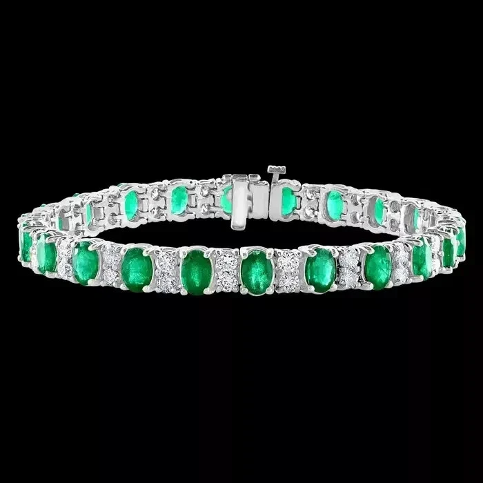 10Ct Oval Cut Lab-Created Green Emerald Women's Bracelet 14K White Gold Plated