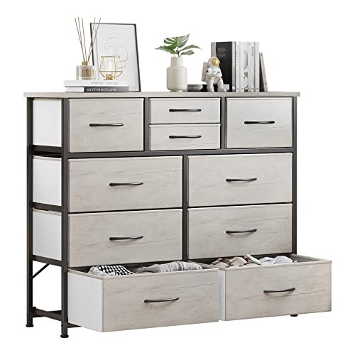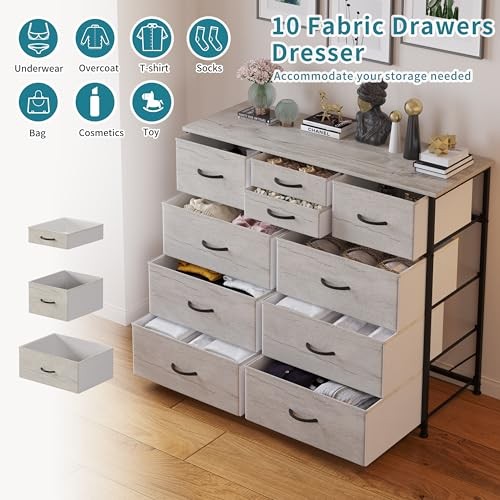10-Drawer Fabric Dresser Storage Unit in Greige for Bedroom or Closet