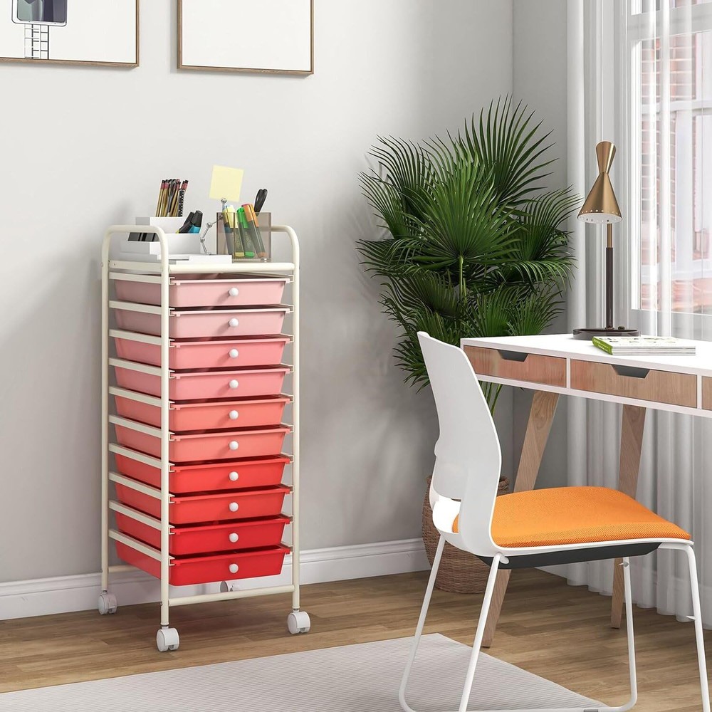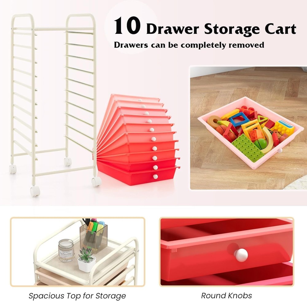 Description: Are you bothered by messy places? This 10 drawers rolling storage cart is the perfect solution for you! Our 10-drawer storage cart has 10 drawers, which provide enough storage space. It was made of chrome steel framed and plastic drawer organizer, which makes this 10-drawer rolling cart durable enough to serve for a long time. Equipped with 4 universal wheels that rotate 360, this home storage cart can easily be moved anywhere you need it. It will be a fancy complement to your office, barber , school, room, living room, bathroom, etc. ✔We can assure you that:No matter what questions you may have, you can send to us at any time. The reply will be sent within 24 hours. Features: Environmental, wear-resisting, and anti aging PP material ensures safe use Steel frame and plastic drawers, durable and can serve your for longtime 10 drawer storage cart providing plenty of space 4 universal wheels(2 with locks) for easy movement and fixation Sturdy steel frame for long lasting performance casters feature brakes to stop and fix it to where you want Colorful boxes good for storing items and decorating your living space Ideal storage box for home, office, barber , bathroom and school Specifications: Color: Black/Yellow/Clear/Rainbow/Multicolor Material: Steel+ PP Drawer Size: 15’’ x 11.5’’ x 2.5’’(L x W x H) Overall Size: 15'' x 13'' x 34'' (L x W x H) Net Weight: 9.5 lbs Package Includes: 1 x 10 Drawers Rolling Cart 1 x User's Manual ✨【10 Drawers for Sufficient Storage Space】: Featuring with 10 drawers, our 10 drawer rolling storage cart provides you with ample space to different categories of items, including makeup, children's toys, watercolor pens, tools, books, cards, snacks, etc. ✨【Wide Range of Usage】: If you want to keep your dressing area, bathroom, or children's room organized and neat, choosing our craft storage organizer cart with drawers will be a smart decision. It will be a fancy complement to your office, barber , school, room, living room, bathroom, etc. ✨【Ultra-Stable & Lightweight Construction】: Made of premium steel, this drawer storage trolley processed with smooth chrome finish to the sturdy frame and durable use. So, the whole frame is not easy to deform and can be used for a long time. Plus, it has a spacious top that can some frequently used items. ✨【4 Smooth Wheels for Better Mobility】: Equipped with 4 universal wheels that rotate 360°, this makeup organizer cart can easily be moved anywhere you need it. of the wheels are designed with lockable brakes to keep it still in a certain position, which help you cope with various situations. ✨【Colorful Decoration & Easy Installation】: Coming with detailed manual, the colorful drawer cart can be assembled well in short time. ⭐Tip: If your plastic drawers are damaged during transportation or have other problems, please our and we will give you satisfactory solutions.