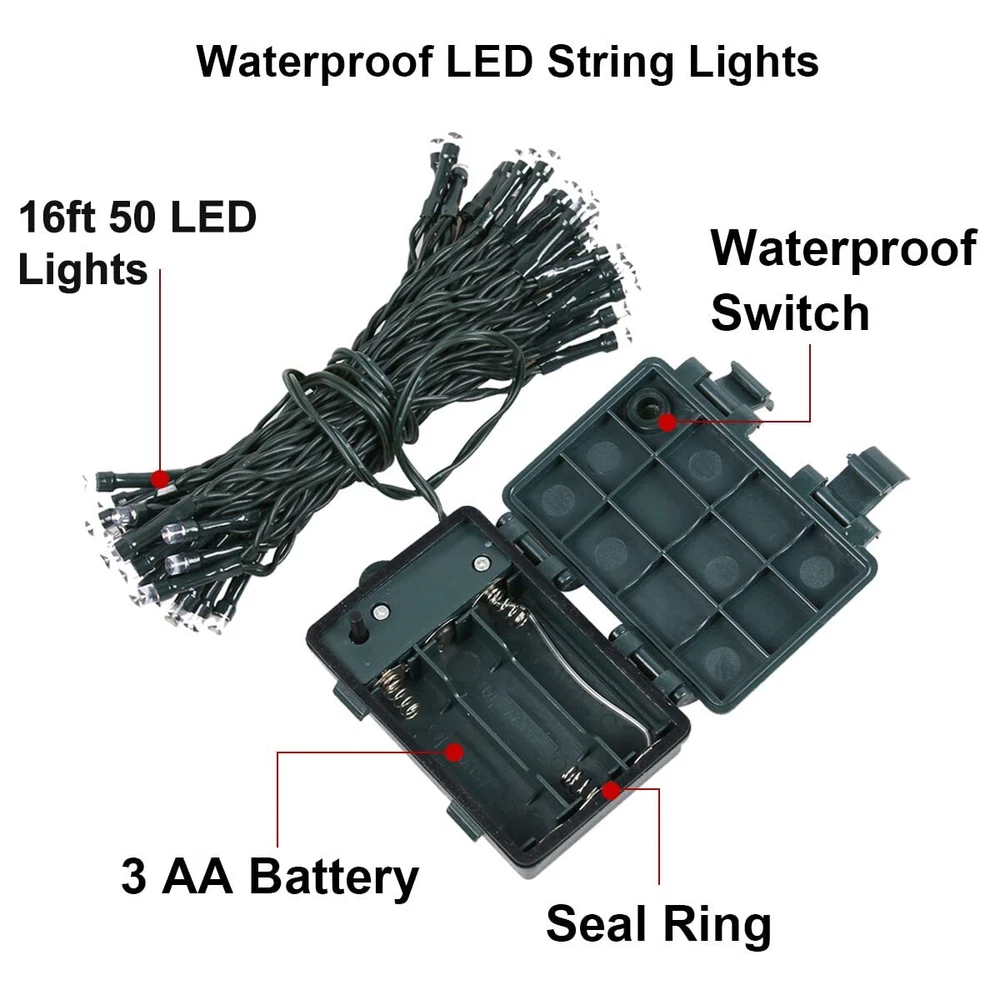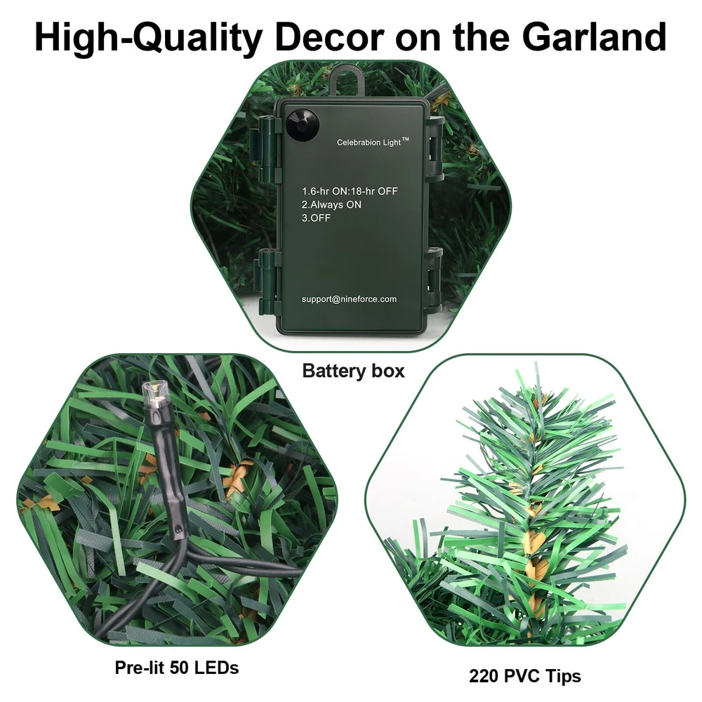 10Ft Pre-lit Christmas Garland with 50 LED Lights- Battery Operated String Li...