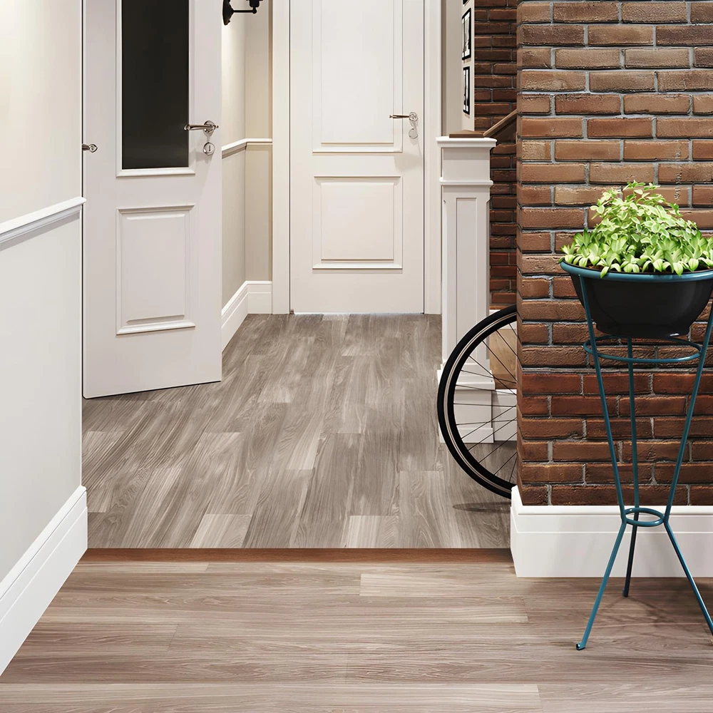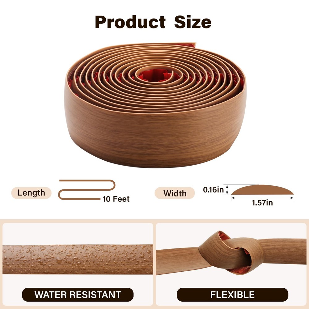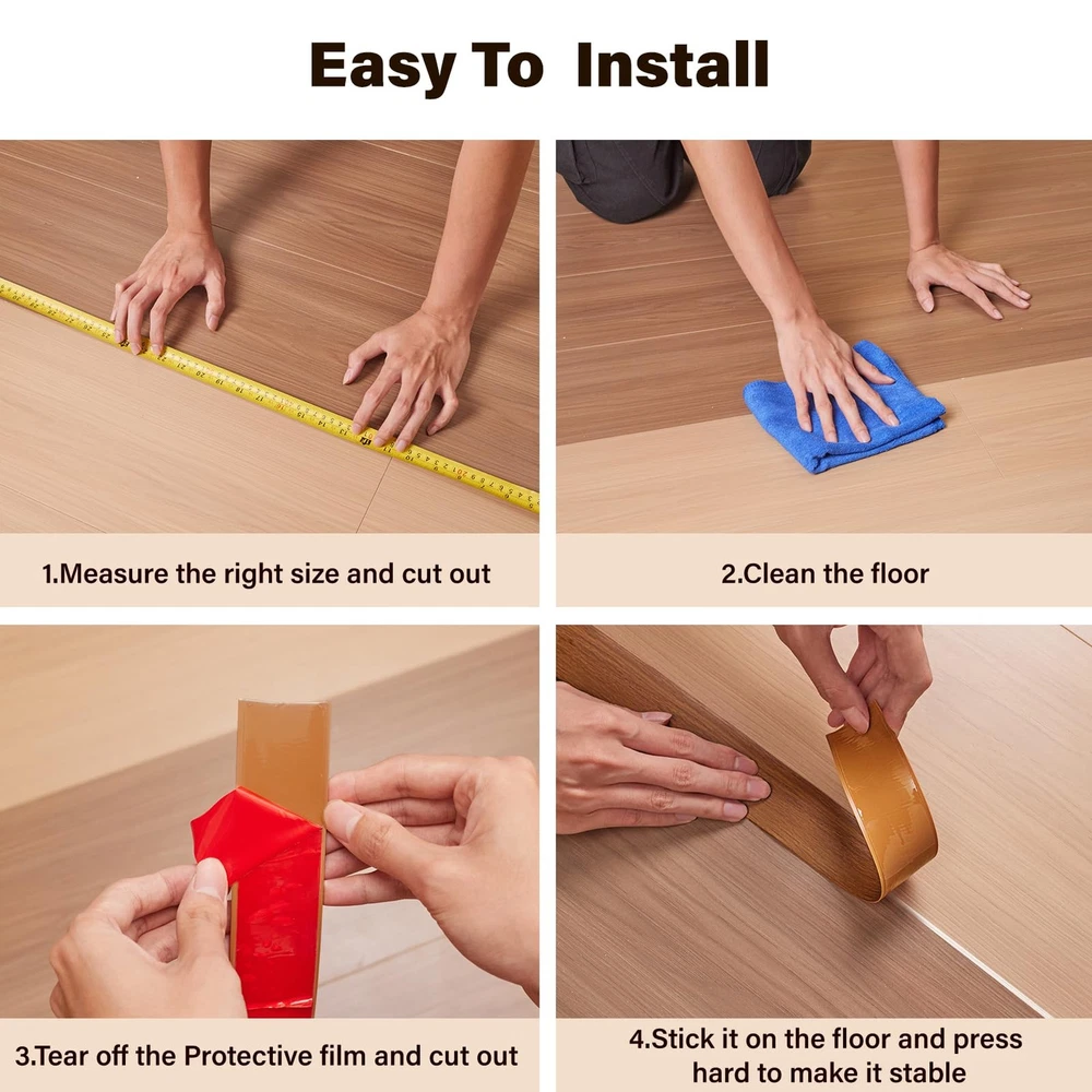 Peel and Stick Design The peel and stick and strong self-adhesive properties of laminate floor joining strip make it easy to cover gaps, cracks, and damaged corners when applied with constant and firm pressure. Simple to Use this vinyl floor transition strip can be easily installed by tearing off the protective film on the back of tape. It can be cut to your desired length at random and can work well after installation. Warm Tips Please make sure the floor is clean and dry (no water) before installation for best use. In addition, the self-adhesive floor transition strip may be squeezed and bent during transportation, please use a hair dryer to heat it to restore the flatness, and the bonding effect will be better Multiple Applications Greymond self-adhesive ethylene base plate transition belt is suitable for covering floor tile gap, can also be used as the separation layer of living room and kitchen transition area, and can also be used as background, shape, frame, cabinet, mirror and other decoration. 【Size】The size of floor Transition strip is 10 Ft x 1.57inch, 0.16inch thick. 【Peel and Stick Floor Transition Strip】floor transition strip enhances the self-adhesive properties of floor connectors. Under constant and firm pressure, the laminate strips cover gaps, cracks and damaged corners. Threshold transition strips may be crushed and bent during transport. Heating with a hair dryer will make the surface smoother and the bonding effect will be better. 【High Quality Material】vinyl floor transition strip is made of high quality PVC material, durable、environmentally friendly and flexible,it has the characteristics of good anti-aging, flame retardant, dirt resistance and environmental protection. Easy to clean, just use a wet cloth to wipe it off. The transition cover is beneficial to protect children or the elderly not to tripping. 【Wood Grain Design】floor transition strips are designed with good-looking wood grain. The wood grain design is versatile in color and elegant in texture. Compatible with most floors and house decor. It plays a decorative role of natural transition and connection, and there will be no abrupt feeling. 【Easy To Install】Adhesive is attached to the back of the floor transition strip, which can be installed and pasted after tearing it off. There is no need to punch holes in the floor and do not damage the floor. You only need to clean the floor or wall and keep it dry, measure the size you need and cut the right size, then tear off the film, press the transition strip until it is stable on the floor or wall. 【Wide Range of Use】Self-adhesive PVC floor transition belt is very suitable for covering floor tile gaps. The covering gap between the two floor surfaces of the bedroom, living room, kitchen and shower, as well as the separation layer of the living room and kitchen transition area can be covered and beautified. It is also manufactured to stick on different materials like wood, tile, laminate flooring, etc. Mirror frame decoration, cabinets and background photos with transition band decoration is also a good choice.
