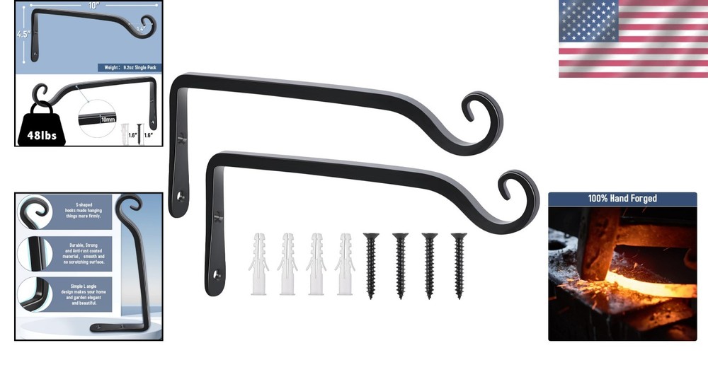 10-Inch Black Wall Hooks for Flowers, Feeders & More - Hand-Forged Bracket Set ‹ › ‹ › ‹ › ‹ › ‹ › ‹ › ‹ › ‹ › ‹ › 10-Inch Black Wall Hooks for Flowers, Feeders & More Hand-Forged Bracket Set Product Features: High Quality: Made of iron, these plant hooks boast durability and strength, ensuring they can hold your beautiful decorations safely and securely. Dimensions: Each hook measures 4.5 inches in height and an impressive 10 inches from the wall. Includes screws of 1.6 inches length for easy installation. Rust & Corrosion Resistant: Coated with high-quality powder, these hooks are designed to withstand the elements, making them perfect for both indoor and outdoor use. Sleek Design: With their smooth edges and simple, stylish appearance, these wall hooks add an elegant touch to your decor without sacrificing safety. Easy Installation: The included metal screws grip quickly and easily into wood or walls, allowing you to begin your decoration project without delay. Multi-Purpose Use: Perfect for enhancing any room, these hooks can hold everything from plants and baskets to mason jar lights, string lights, wind chimes, bird feeders, and even yoga mats! Why Choose Our Wall Hooks? Transform your spaces with these exquisite, handcrafted wall hooks that combine functionality and elegance. Whether you’re looking to showcase your favorite plants, hang lights for a cozy atmosphere, or simply organize your living space, our 10-Inch Black Wall Hooks are the perfect addition. Their robust construction ensures lasting beauty, while the sleek design adds a touch of sophistication to any environment. Join the countless satisfied customers who trust us for high-quality home and garden products. Experience the perfect harmony of style and practicality today by choosing our hand-forged wall hooks. If you have any questions or need support, we’re just a call away to provide fast and effective service. Shipping Free & Fast Shipping - We offer free shipping to most of the USA with a normal delivery time of 3-7 days. However, due to the current situation, additional delivery time (up to 3 weeks) may be required for some items. Alternative Carriers - We may use alternative carriers (e.g. USPS, FedEx, UPS, etc.) to ensure your package arrives safely and on time. Due to the use of multiple carriers, we are unable to provide a tracking number automatically. Handling Time - Orders are processed and shipped within 1-2 business days of receiving cleared payment. Shipping Restrictions - Shipping to Alaska, Hawaii, Puerto Rico, Guam, and other US territories may incur shipping charges or delivery restrictions. Please contact us before ordering, or your order can be refunded/cancelled. State Restrictions - There may be restrictions based on your state of purchase. For example, certain items may not be shipped to California due to state regulations. Contact for Tracking Updates - If you require tracking updates or have any concerns about the delivery of your order, please feel free to contact us, and we will be happy to assist you. Return 30-Day Hassle-Free Returns - We want you to be completely satisfied with your purchase. If you are not, you can return the item within 30 days of receiving it for a full refund or exchange. Easy Return Process - To start a return, simply contact us and we will provide you with a prepaid return shipping label and detailed instructions. Restocking Fee - There are no restocking fees for returns. However, the buyer is responsible for return shipping costs if the return is not due to a seller's error. Refund Processing Time - Refunds will be processed within 5 business days of receiving the returned item in its condition. Payment We accept all major credit cards, PayPal, and Apple Pay for your convenience. Your payment information is secure and encrypted to ensure a safe and seamless transaction. Please complete your payment within 3 days of purchase to avoid any delays in shipping. Feedback Your feedback is extremely important to us. We strive to provide the best products and customer service possible. If you are satisfied with your purchase, please take a moment to leave us a positive review. If you have any concerns or issues with your order, please contact us before leaving negative feedback. We are committed to resolving any problems and ensuring your satisfaction. Contact Us If you have any questions or concerns, please feel free to out to our customer support team. You can contact us through the eBay messaging system. We are available Monday to Friday, 9:00 am to 5:00 pm EST, and we will do our best to respond to your inquiry within 24 hours. Buy it now and enjoy a pleasant shopping experience! Unit Quantity: 2 Features: Rust Resistant,Hand-Forged,Corrosion Resistant,Easy to Install,Sleek Design,Multi-Purpose Suitable For: Plants,Indoor/Outdoor Use,Bird Feeders,Wind Chimes,Flower Baskets,Yoga Mat Compatible Plant Type: Flowering Plant,Hanging Plants,Baskets,Mason Jar Lights,String Lights Type: Plant Hanger Hook Material: Metal Number in Pack: 2 Color: Black Shape: L Shape Item Height: 10.23 Inches Item Thickness: 0.9 in Item Weight: 1.21 lb Weight Capacity: 48 lb