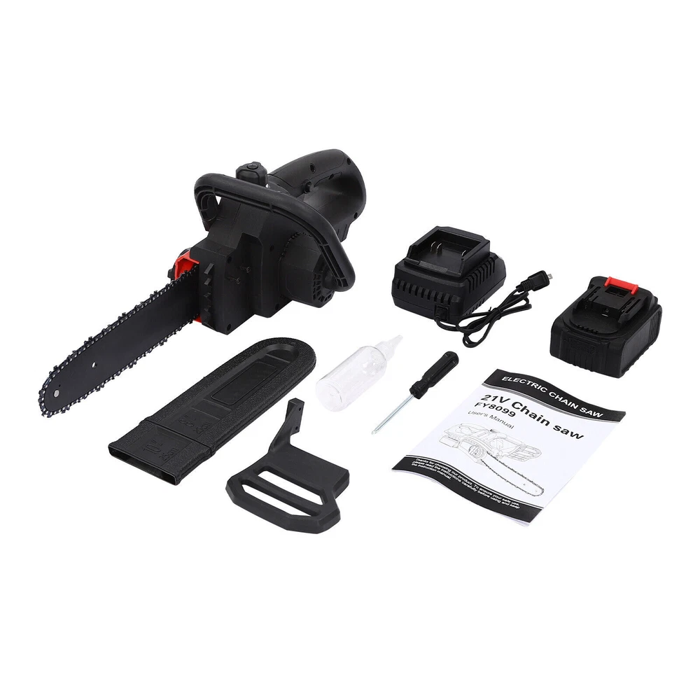 Description Using Traditional Axes to Cut Wood Is Inefficient and Very Tiring, so You Can Choose Our Chainsaw for Improving Efficiency in Pruning, Wood Cutting, and Gardening. It Is Made of High-quality Materials and Adopts an Exquisite Quenching Process, so It Is Sturdy and Durable. a Powerful Motor with High Speed Ensures a Great Cutting Effect. Having It Will Make Your Work Easier and Simpler! Package Included 1* Chainsaw 1* Guide Plate Sleeve 1* Battery 1* Charger 1* Protective Baffle 1* Screwdriver 1* Oiling Bottle 1* English Manual 1* Carrying Case Key Features Sturdy and Durable: the Product Is Made of High-quality Materials, Using Exquisite Craftsmanship, with High Strength, Wear Resistance, and Long Service Life. High Efficiency: Thanks to Its Premium Motor, Sharp Chain, Long Guide Plate (10in), and Fast Chain Speed, This Item Can Achieve a Large Cutting Diameter with less Power Consumption, Allowing You to Prune, Saw, and Log with less Time and Effort. Long-lasting Battery: the Large-capacity Battery Allows for Continuous Working After Full Charging. the Equipped Charger Ensures Timely Charging for the Battery. Thoughtful Design: After Adding Lubricating Oil (Not Included), the Chain Is Automatically Oiled When the Machine Is Running, Which Can Provide Necessary Lubrication for the Chain, Extend Its Service Life, Increase the Safety of Use, Improve Work Efficiency, and Protect the Chainsaw. Safe to Use: the Safety Lockout Switch and Start Switch Prevent Accidental Activation or Inadvertent Contact, Increasing Safety in Use. Good Heat Dissipation Performance: the Heat-sink Holes on the Machine Ensure a Good Heat Dissipation Effect, Which Can Effectively Avoid Excessive Body Temperature, Thereby Extending the Service Life of the Machine. Easy to Use: Thanks to Its Lightweight (Gross Weight: 7.72 Lbs), Ergonomic Handles, Detailed English Manual, and Simple Structure, Even the Elderly and Women Can Get Started Quickly. Convenient Storage & Carrying: the Chainsaw, Battery, Charger, and Other Necessary Accessories Are Included in the Customized Carrying Case with a Handle and Two Sturdy Locks for Easy Storage, Organizing, and Carrying Without Fear of Them Falling out. Details Oil Level Window: It Allows You to Monitor Changes in Oil Levels in Real Time to Facilitate Timely Refilling. Practical Handles: the Ergonomic Handle Gives You a Comfortable Grip Without Slipping, Absorbs Shock, and Reduces Hand Fatigue Even in Long-term Use. an Additional Auxiliary Handle Allows for Convenient Operation. Protective Baffle: It Protects Your Fingers from Wood Chips and Chains. Chain Tensioner: It Ensures Accurate and Convenient Adjustment of the Chain Tension, Making the Replacement and Installation of the Chain Easier. Guide Plate Sleeve: It Allows for Convenient Storage of the Guide Plate When Not in Use, and Can Protect the Guide Plate Well and Prevent Injuries Caused by Accidental Contact. Application It Is Widely Used in Gardens, Parks, Farms, Ranches, Pastures, Orchards, Greenhouses, Forests, Camping, Etc., and Can Be Used for Forest Harvesting, Wood Cutting, Small Branch Pruning, Bush Pruning, Gardening, Home Woodworking, Bamboo Sawing, Logging, Diy Crafts, and so on. Specifications Style: Modern Color: Black, Red Assembly Required: Yes Plug Standard: Us Standard Voltage: 21v Guide Plate Length: 25.4cm/10 in Gross Weight: 3.5kg/7.72 Lbs Product Size: 54*2*14cm/21.26*0.79*5.51 in Package Size: 54*21.5*20cm/21.26*8.46*7.87 in Notes 1.Please Note That Gloves (Not Included) Should Be Worn If Necessary. 2.Please Keep the Product out of Reach of Children to Avoid Injury. 3.Please Use This Product to Cut Wood Within the Applicable Size Range. 4.Please Note That This Product Does Not Come with Lubrication Oil. 5.Please Read the English Manual Completely Before Use, and Pay Particular Attention to the Safety Instructions Included. 6.Please Allow the Slight Color Difference Caused by the Shooting Light and 1-3cm Error Due to Manual Measurement, and Make Sure You Do Not Mind Before You Order. Payment Delivery details Terms of sales About us Contact us Payment We accept ebay payment 。 Fees such as import duties, taxes are not included in the item price or shipping costs. These charges are the buyer's responsibility. Delivery details Shipping: 2-9 working days to: USA Terms of sales We maintain high standards of excellence and strive for hundred percent customer satisfaction. Feedback is very important to us. We hope that you contact us immediately before you give neutral or negative feedback, so that we can address your concerns. It is impossible to address issues if we do not know about them! About us Your satis faction is our ultimate goal. We work hard to earn your trust and future business. Our certified technicians have tested each item before shipping. The unit comes with 1 year limited warranty on all manufacturing defects. a) If you receive a defective item, you may return it or ask for a discount. Please contact us within 14 days after you receive the package. b) What you returned must be intact and in its original packaging as re? u. Customer is responsible for shipping costs of the returned item. c) We will cover the cost of shipping back t with the shipping rate indicated in the registration page. We will send you a new unit or refund the full payment you paid. Thank you. Contact us Business Hour Business Hour: Monday To Friday: 8:30 AM to 5:00 PM (Beijing China time) Due to time zones, our reply to your questions may not be immediately. But within above working time, we will reply your email within 24 hours. If it's non-workdays, please kindly be patient and wait till Monday. Please contact us with ebay message. Please feel free to contact us if you have any questions. Monday To Friday: 8:30 AM to 5:00 PM (Beijing China time) Due to time zones, our reply to your questions may not be immediately. But within above working time, we will reply your email within 24 hours. If it's non-workday